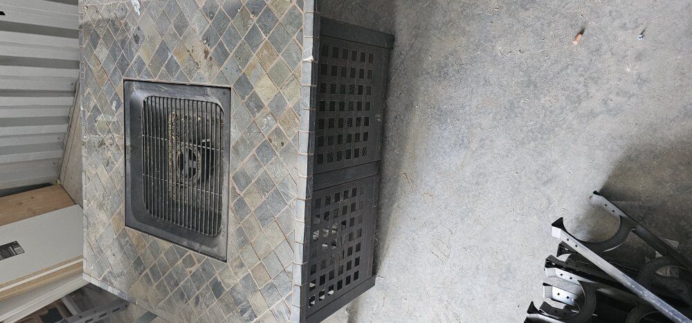 Venmopatio table with propane fire pit fire pit. it's about 40 in by 40 in. sitting in my storage unit collecting dust hardly ever been used.