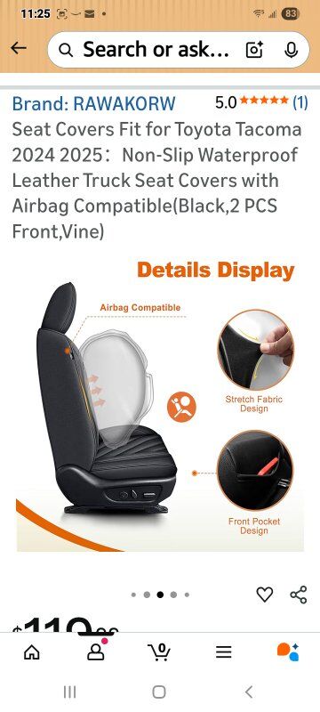 Brand-RAWAKORW Material-Faux Leather Manufacturer-RAWAKORW Custom Seat CoversThe car seat covers front seats are customized on "Toyota Tacoma" the seat covers for trucks only fit for Toyota Tacoma 2024 2025. Do not buy it if your truck is not Toyota Tacoma. MAINTAIN FUNCTIONALITYThe seat covers for cars will not affect the original functions of the seat such as airbags,seat belts and seat adjustment. The elastic cloth design on the side of the front seat covers allows it to perfectly fit your original car seat,bringing better comfort and safety. High QualityThis automotive seat covers is made of high-quality faux leather. It is not only durable and wear-resistant,but also allows you to have a comfortable experience during use the seat covers front seats. Modern DesignOur custom fit leather seat cover feature a sleek,stylish design that adds a touch of elegance to your vehicle's seats while protecting them from stains and dust.