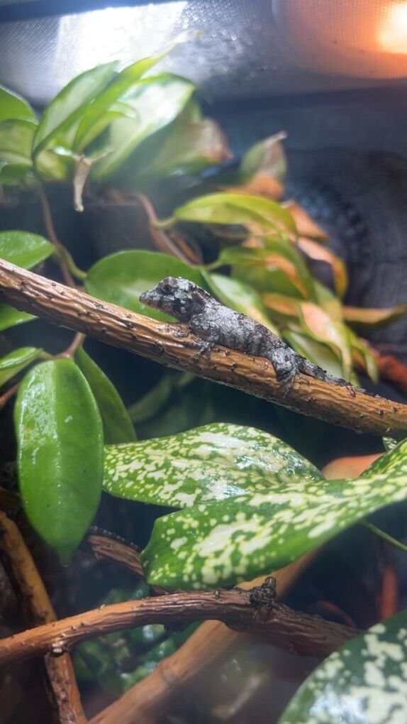 We have 6 baby falsies! These guys are super cool critters! As they grow they develop a helmet on their heads and are such a cool species of anole, they get their names from the chameleon look but are part of the anole species! Super cool and handable reptiles! They love high humidity, and love being sprayed with water! Eating well on crickets, Dubai’s, hornworms! Shoot me a message for more details,
