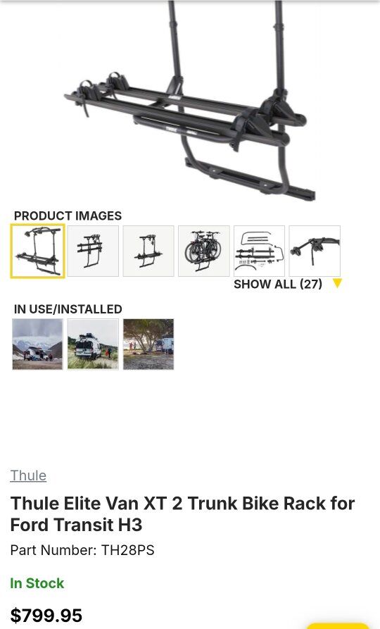 Thule Elite Van XT 2 Trunk Bike Rack for Ford Transit H3