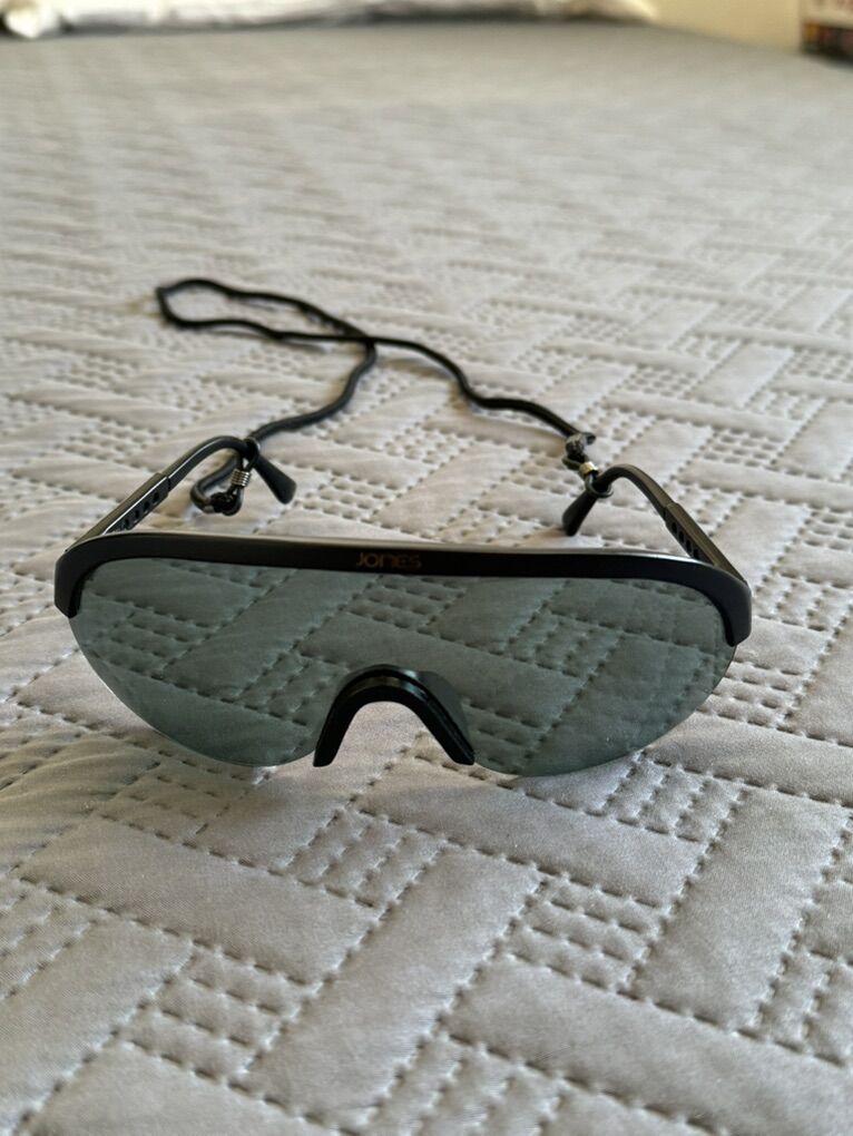 Jones goggle style glasses! Great for skiing, boarding, snowmobiling or cycling!! Fairly dark” very comfortable! Excellent condition! Not asking much just not a skier anymore!