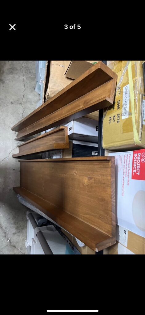 PayPalThese are used in excellent condition Pottery Barn shelves set Pottery Barn Holman Handmade Floating Ledge Big shelf measures: 4ft long, 11-1/2” deep, 3-1/2” tall Long thin shelf measures: 4ft long, 4-1/2” deep, 3-1/2” tall Small shelf measures: 3ft long, 4-1/2” deep, 3-1/2” tall. These shelf’s are in excellent condition. Some corners have damage (see photos) Brackets are included. Pick up in Taylorsville