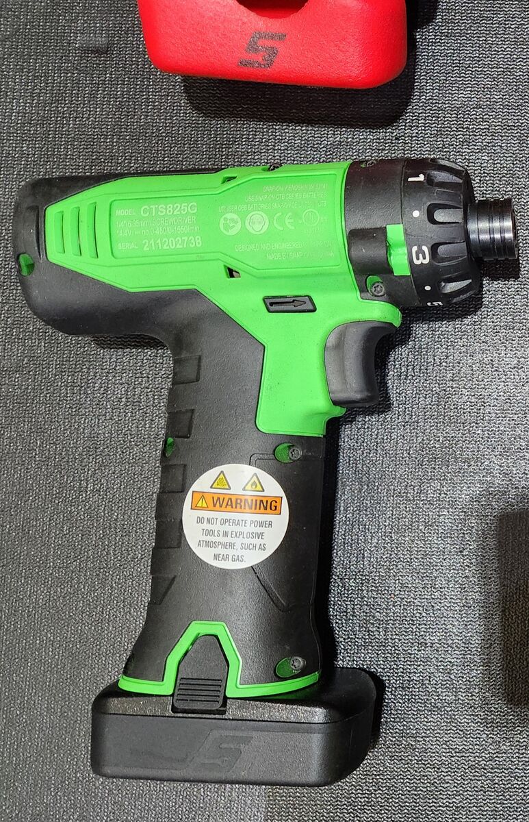 Near new Snap On ct9080 brushless high torque 1/2" drove inpact gun, well north of $1,000 new, comes with impact gun, protective sleeve, battery, charger. & CTS825G 14.4v 1/4" Hex Drill/Driver wich battery cover, and magnetic battery base sells for nearly $600 $500 for the set May trade for Snap On roll cart (Example - Last Picture)
