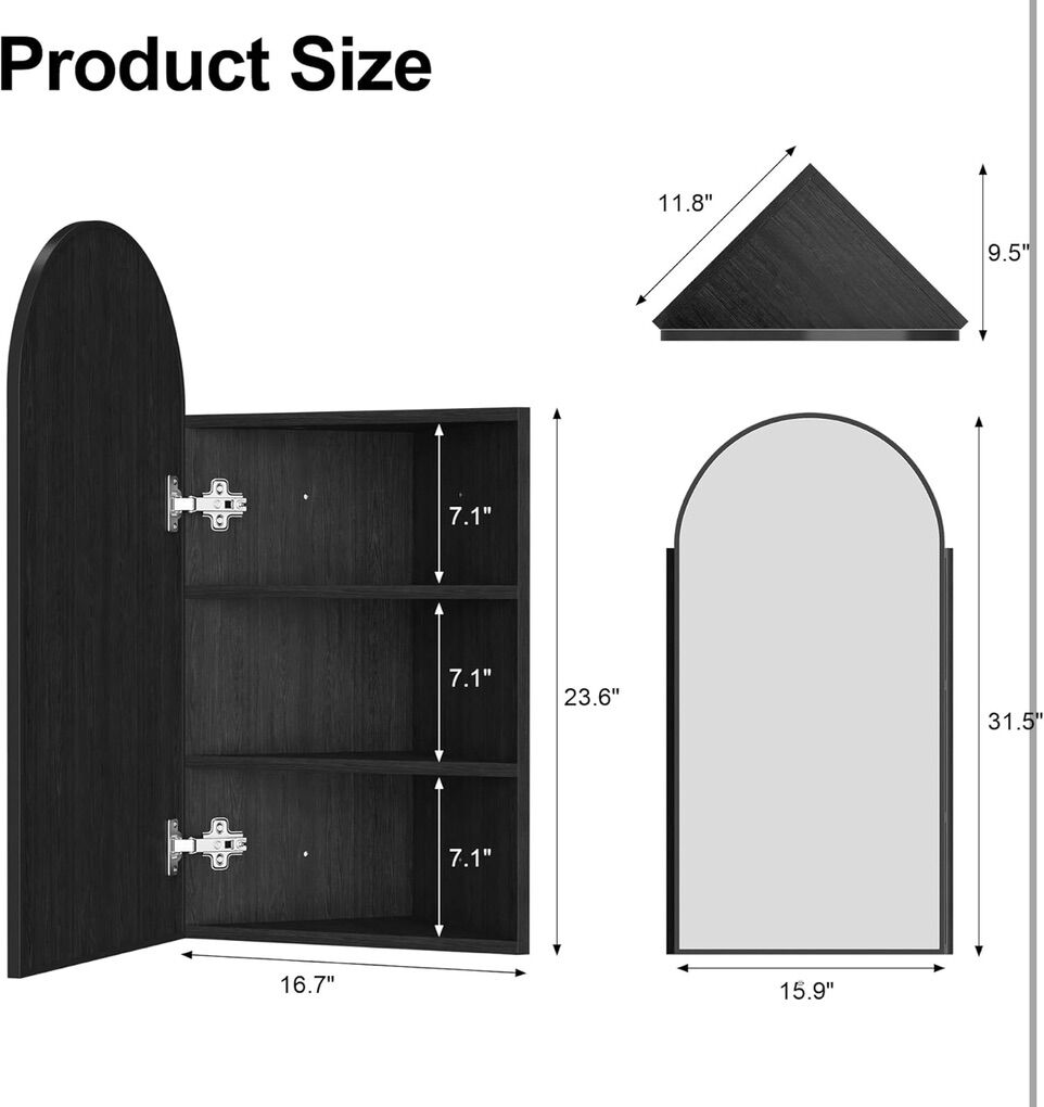 Venmo16x31 Inch Black Corner Medicine Cabinet with Mirror,Corner Mirror Cabinet Surface Mounted f