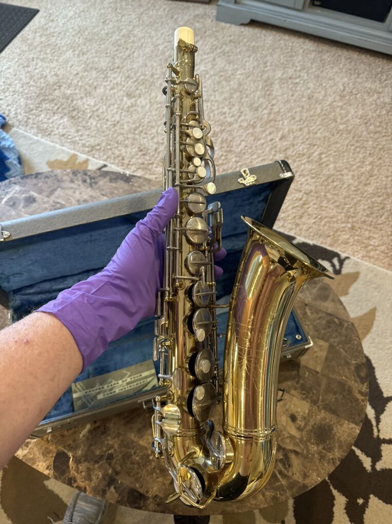 Conn 14M Director student alto sax, nicknamed the “shooting star” model because of the bell engraving. Very nice condition for its age. Serial number puts it very close to 1959, but it may be a year or two either direction. Cash only, No Trades, you come pick up in Riverton.