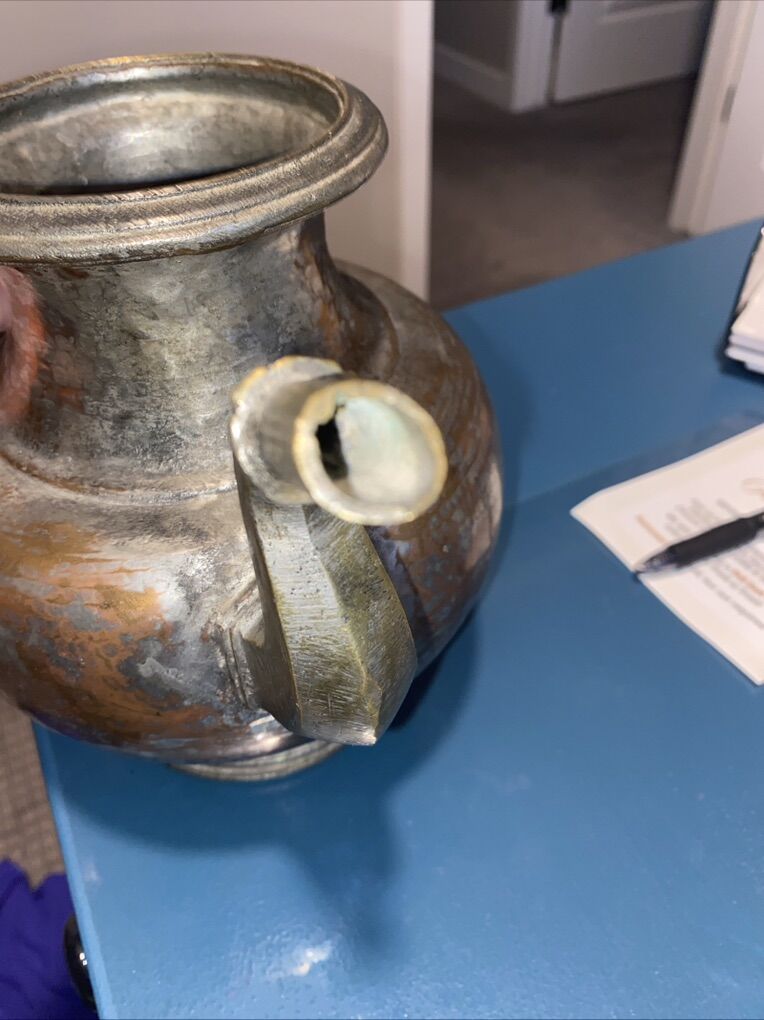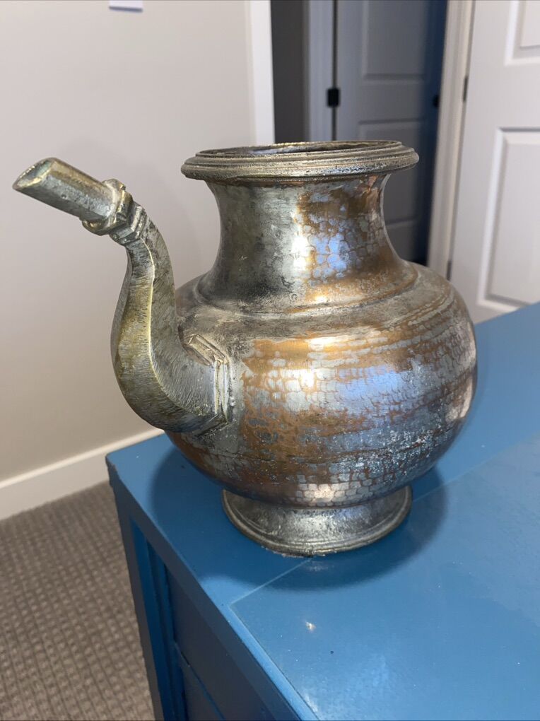 VenmoThis brass water pot, known as a 'kindi' or 'lota' in South Asian cultures, dates back to the early to mid-20th century. It was traditionally used for ritual purification and ablutions in Hindu and Islamic religious practices, with the spout designed for controlled pouring of water during ceremonies.