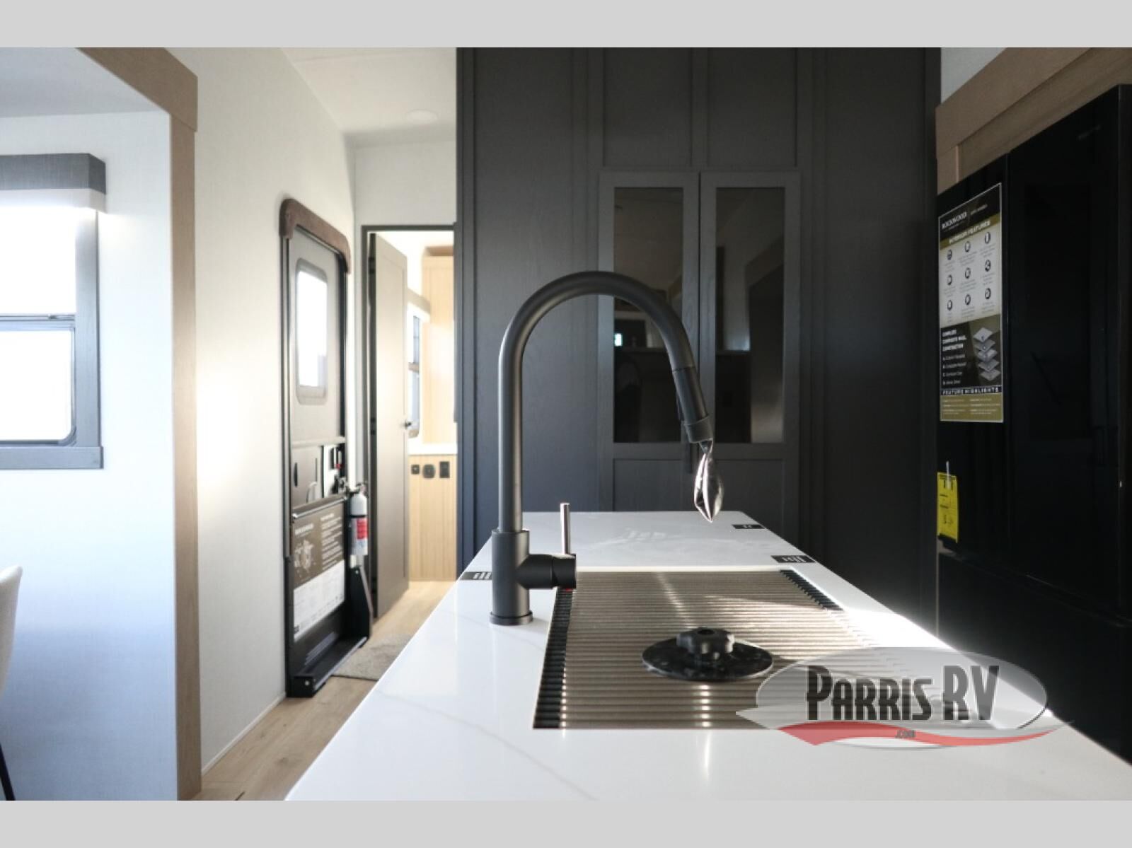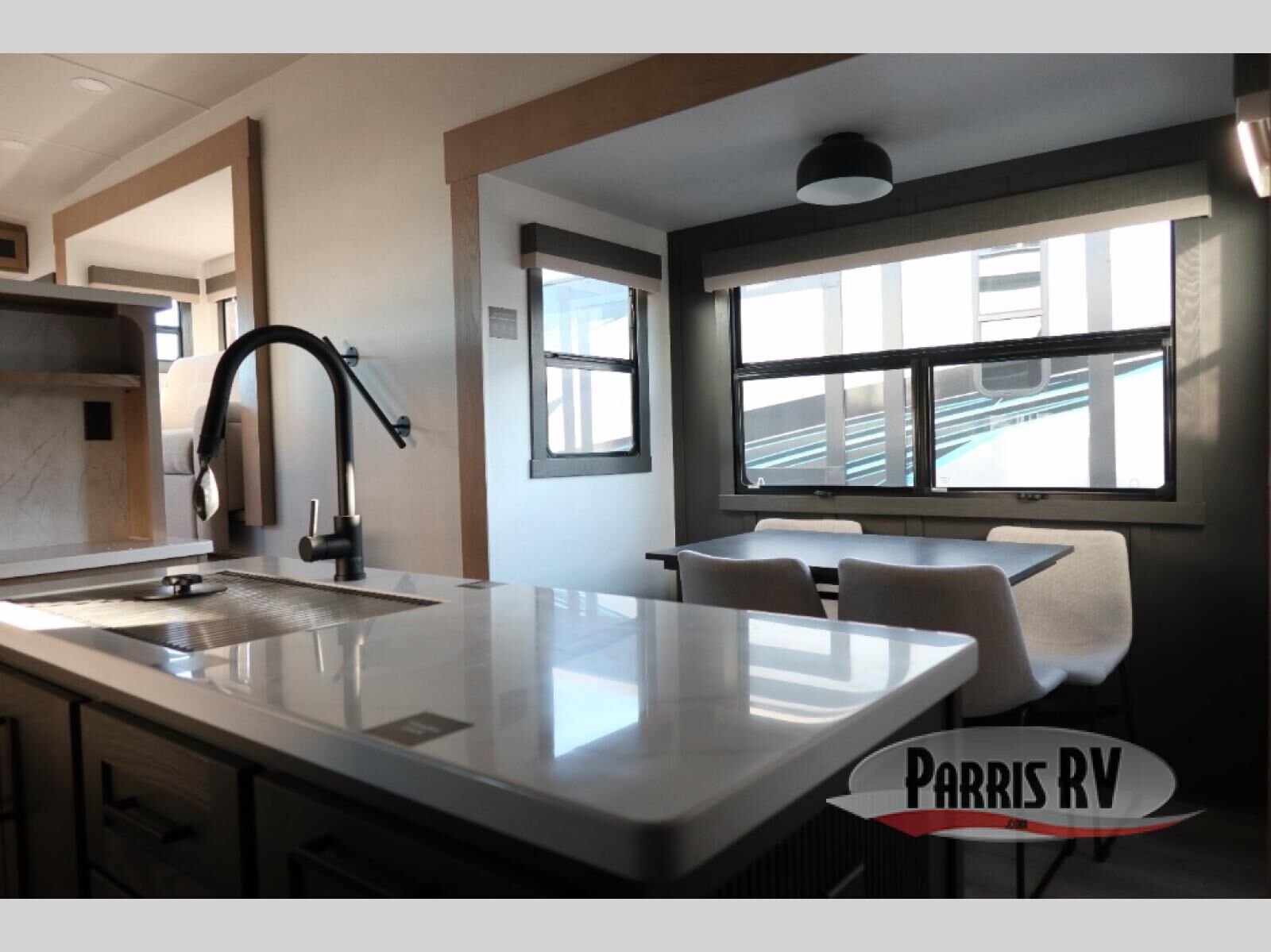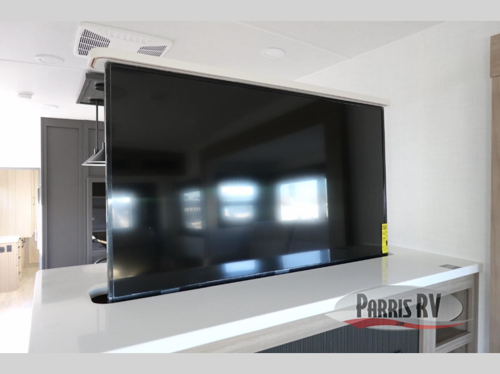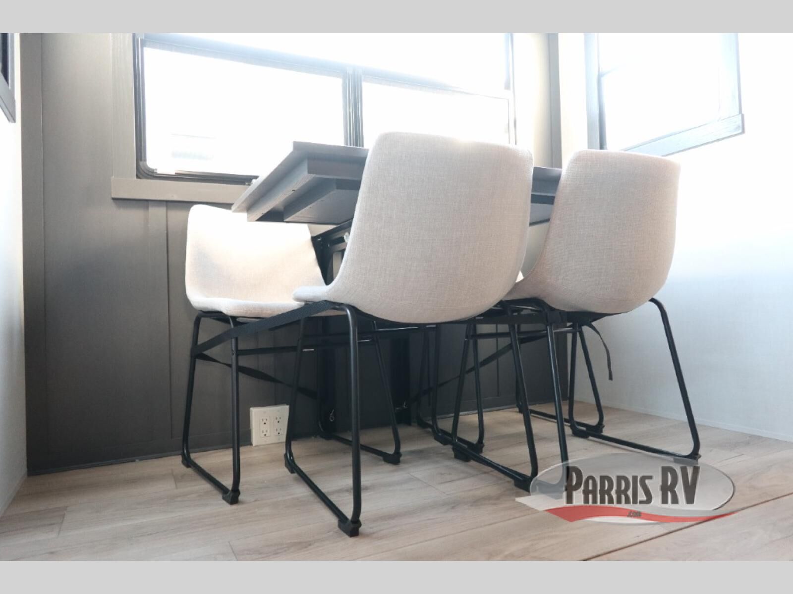 This fifth wheel is designed for comfort, connection, and relaxation on the road. The 72" x 80" king bed in the bedroom offers a spacious and restful retreat after a long day. Mealtime is a time to gather, and the rotating table with chairs creates the perfect setting to sit down, share stories, and reflect on the day's adventures. For more laid-back evenings, the front living area features a Televator TV, turning the space into a cozy home theater for movie nights with the whole crew. When it's time to wind down, two 68" hide-a-beds provide additional sleeping space, ensuring everyone has a comfortable place to rest.