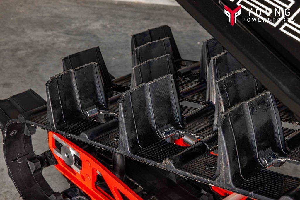 The PRO RMK rear suspension features balanced geometry and a rigid rail design for maximum lift and direct power transfer to the snow. This delivers explosive drive and consistent handling even in the steepest, most technical mountain conditions. Available in 155” and 165” track lengths.