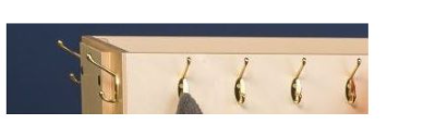 Top bin for mittens & other accessories 32 hooks for backpacks and coats Four locking casters Bottom shelf made of perforated metal for boots/shoes