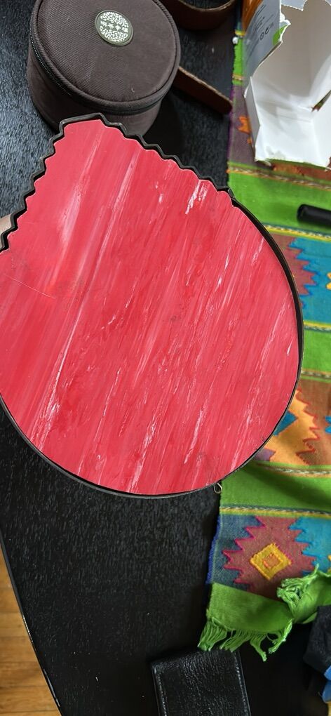 Vintage Art Deco copper wall mirror with a stepped frame. It got a crack and a chip but the frame are in great condition