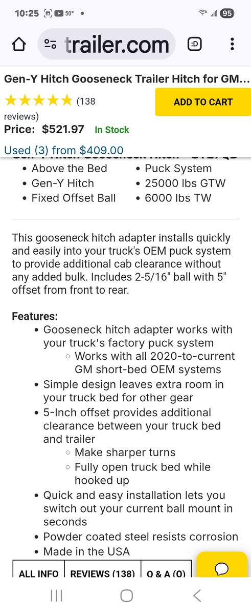 Gen Y 5" off set ball for GMC & Chevy New still in the box.