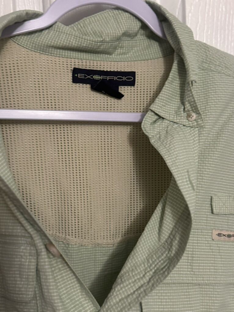 Excellent condition Exofficio men’s ventilated lightweight fishing or hiking shirt- light green