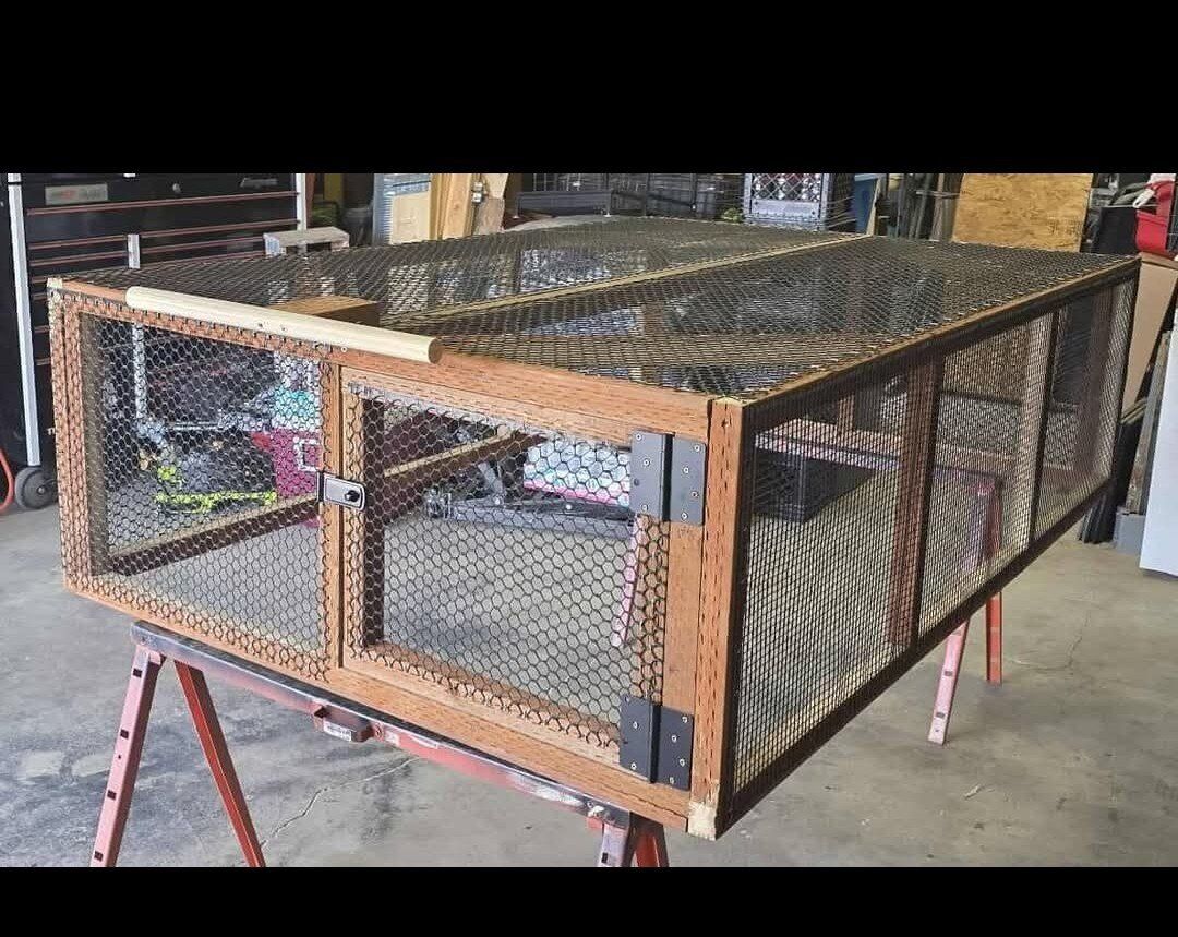 Local custom made!! Brand new! Never used. Can be built to order! Chicken or duck pen. 4 feet wide, 6 feet long, 22 inches tall. door on the end under the handle. can be picked up in twin. Can also be delivered for a small fee added to the original cost,