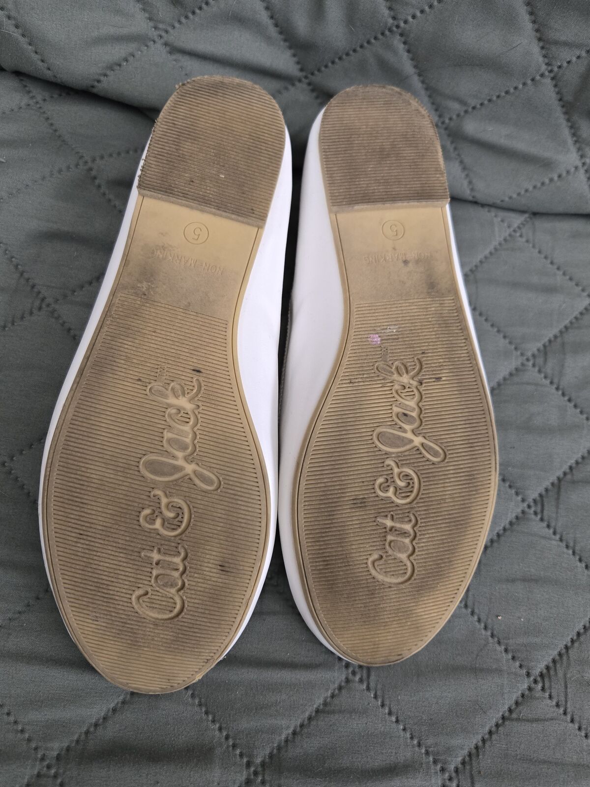 White 5, brown 3½ & black 4 flat dress shoes. Worn once or not at all. All sold together.