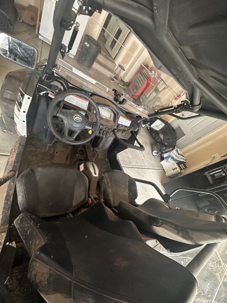 2 seat side by side. Low hours. I took this on an elk hunt and it climbed things no problem. It has been a great machine. My family has gotten bigger. I picked up a four seater