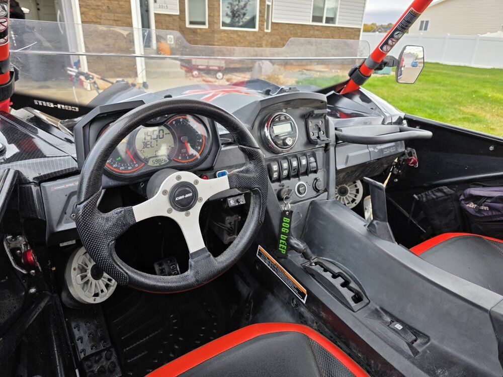 Meticulous maintenance on engine oil, trans and diffs, greased regularly all fluids every 500 miles. Dalton clutch kit, WB belt, Scotts front gusset kit, newer suspension bushings, lightbar. Shock Therapy springs and valves, night and day over stock shocks. Full metal Dragonfly doors with storage bags, mirrors. Hd tie rods and rear radius rods, receiver hitch, can am qlink storage box. 4500lb synthetic winch used 2 times MB quartz speakers with amp, Bluetooth stereo. 30" tires with fuel beadlocks, have another set of dirt 30x10x14s that go with it plus a set of paddle tires front and rear on stock rims. several spare parts worth 500+, half and full windshield, axles, bearings etc. Awesome machine 5900 miles, 525 hrs. Price obo