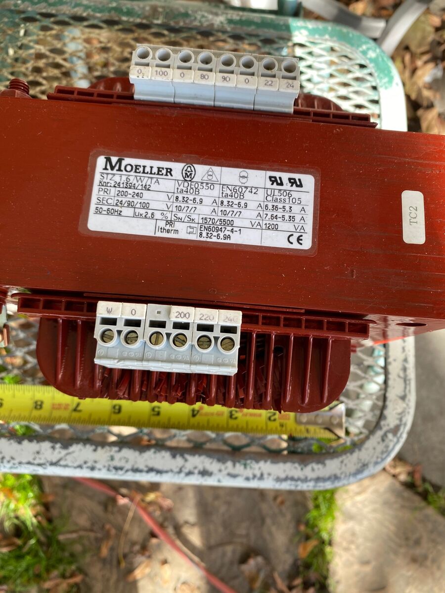 PayPalmoeller stepdown power transformer. look at pics for info. like new great shape. 7 1/2" wide, 6 1/2" tall, 5 1/2" deep. tex if interested. make offer or trade.
