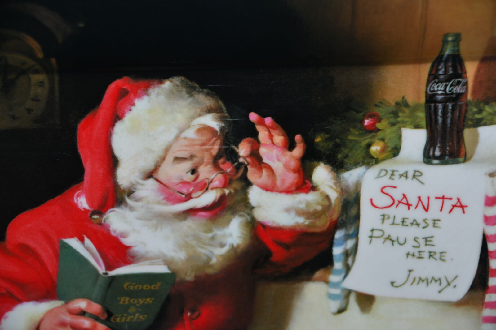 This LARGE SANTA "COCA COLA" SEVING TRAY with HANDLES is about 19" x 14". It is EVOLUTION by SAKURA. Our home is smoke free. Questions??? Please ask. We are located in Plain City. Cash only please.