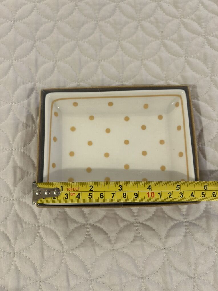 VenmoNew in the box from J.Crew gold polka dot rectangular ceramic trinket dish. Perfect gift. Clean smoke free. Cash or Venmo. Pick up from Alpine.