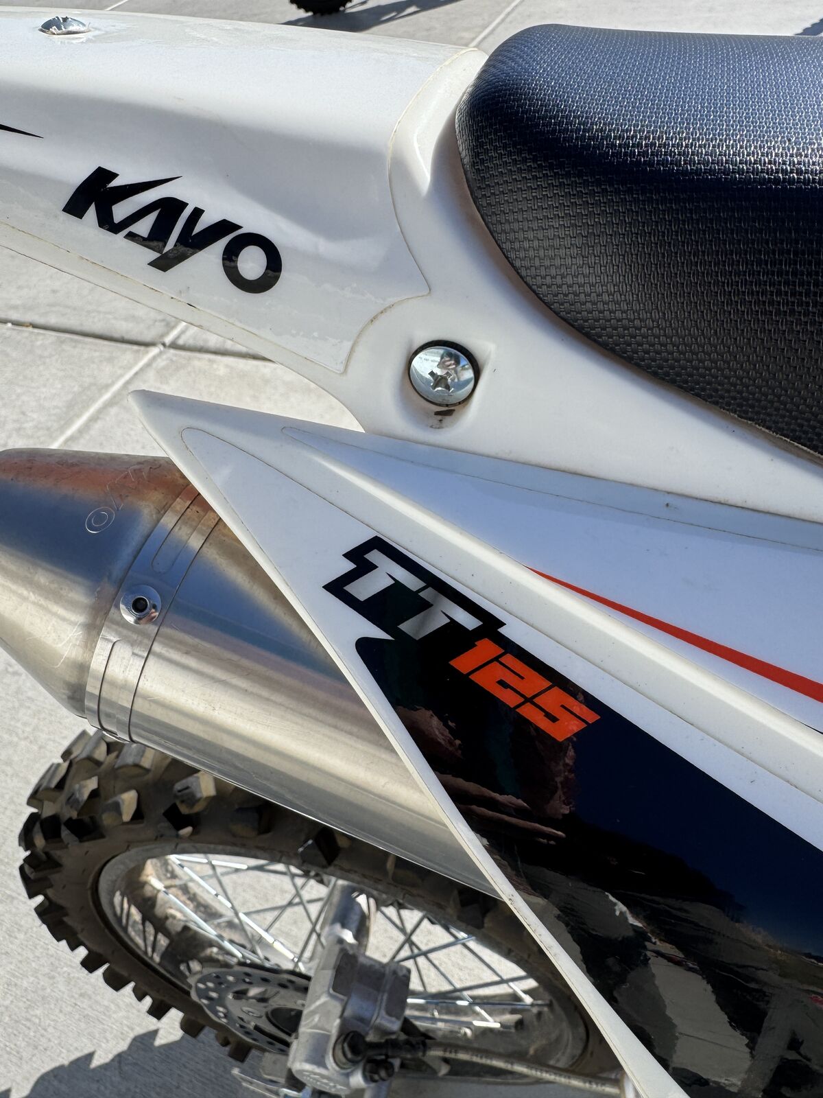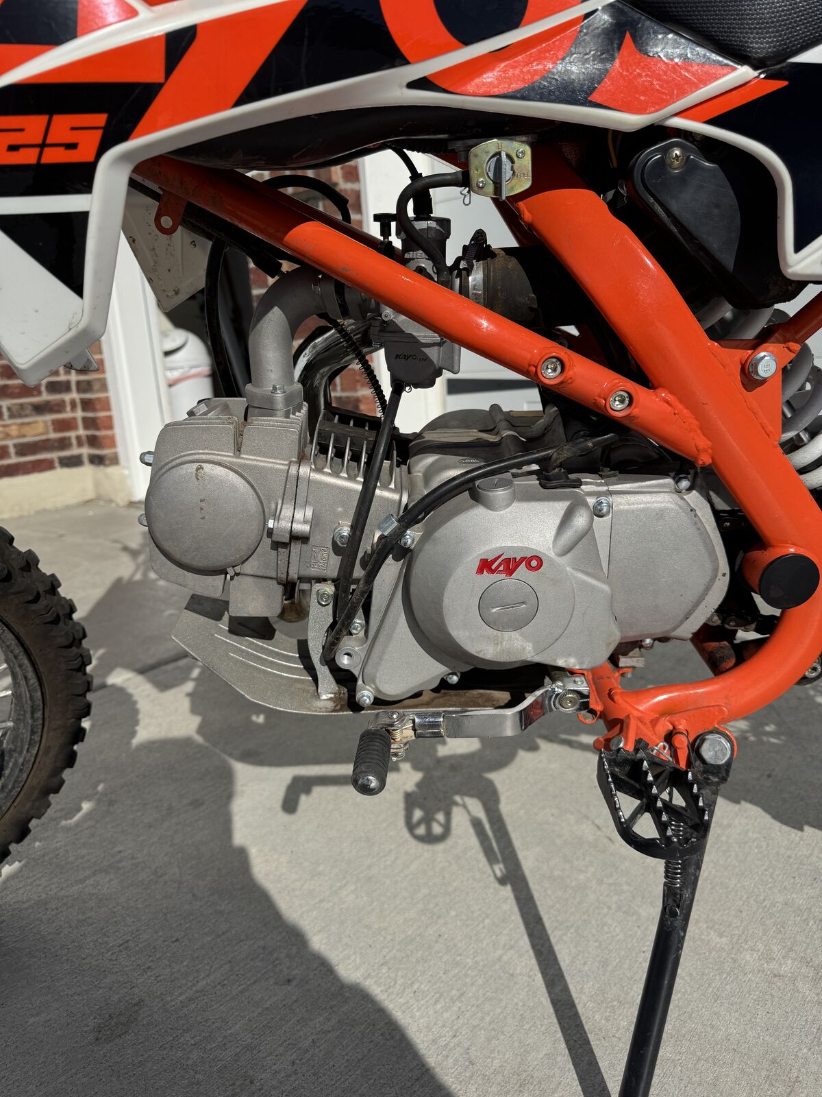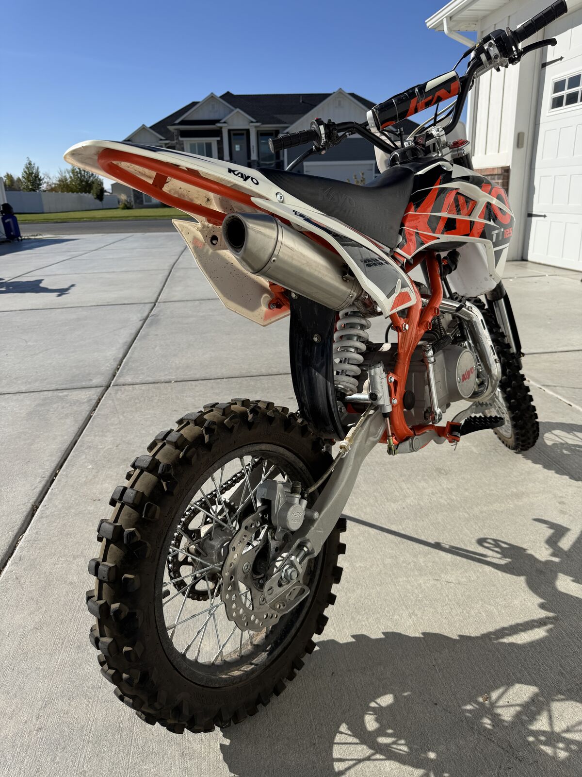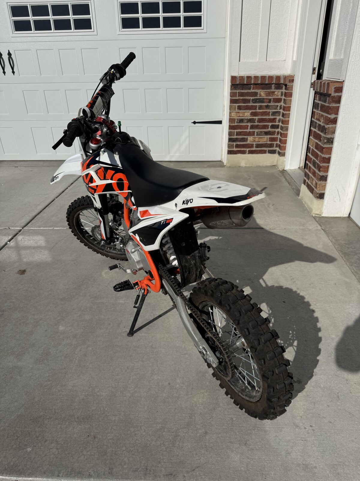 For sale 2022 Kayo TT 125 dirtbikes. My boys have outgrown it and did not ride them as much as we had hoped. Upgraded to the breakaway clutch and brake levers on the dirt bike to decrease chances the levers getting broken. The dirt bike is in excellent condition. Lots of tire tread left. Titles in hand. Christmas is coming. $1500. Kayo TT 125 dirt bikes have a 4-speed manual clutch, low maintenance 120 cc 4-stroke engine, air cooled, inverted forks, large front and rear disc brakes, full size 17 inch front wheel and 14 inch rear wheel, 33.6 inch seat height, weighs 161 pounds, 11.4 inches of clearance, and has a 1.45 gallon fuel capacity.