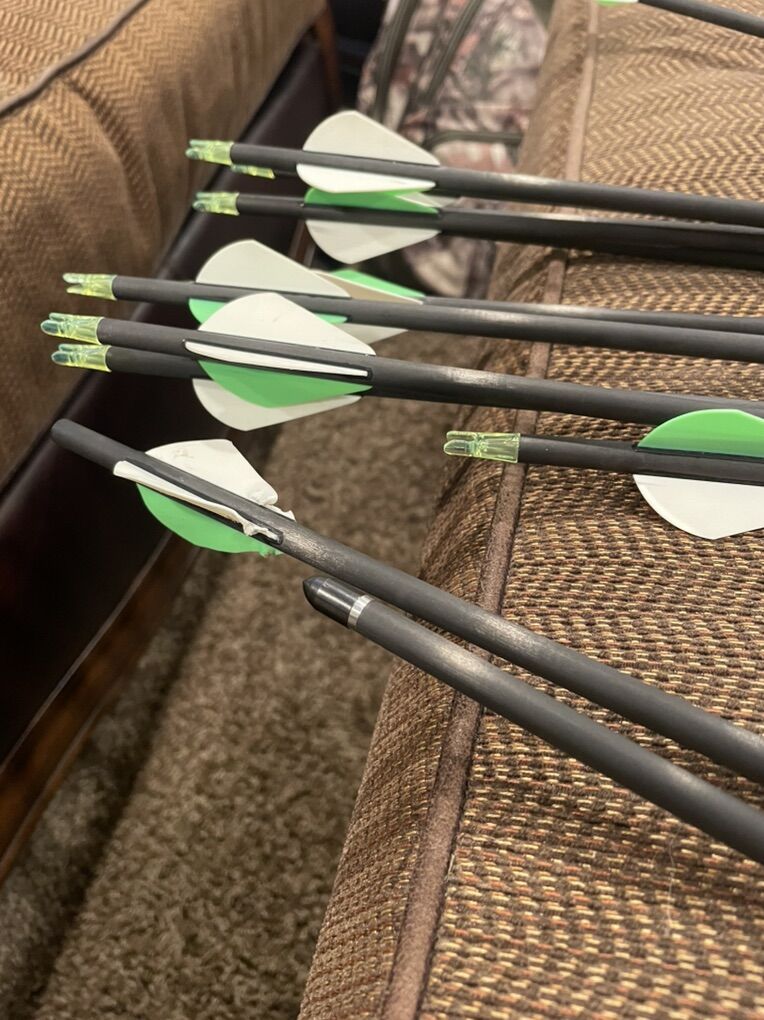 Venmo27 5/16 inch arrows. One has no insert, field tip, or knock, and has bad fletching. The rest are fine other than ones missing a tip also.