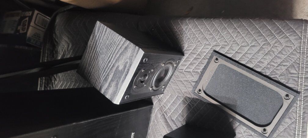 Tower Speakers with surround speakers. Two Excellent condition tower speakers. these sound incredible. very capable , vibrant, and clear sound reproduction... center and two surrounds included. . asking 150 for the set of 5.