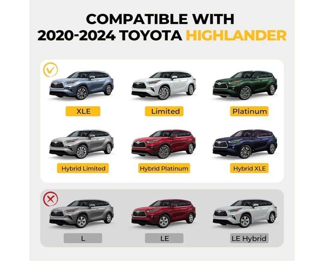 VenmoBougeRV Lockable Car Roof Rack Crossbars for Toyota Highlander 20-25 XLE, XSE, Limited, Platinum, Bronze Edition, and Hybrid. Not for Grand models. Aluminum. Black. 260lbs capacity. $70.