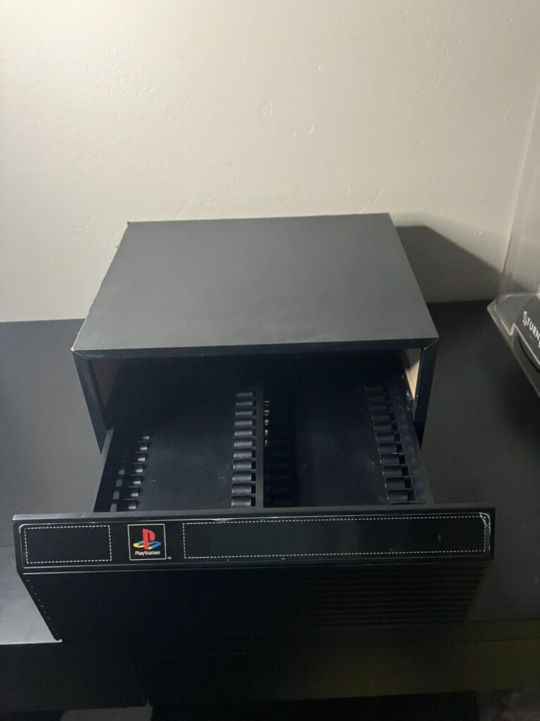 Original PlayStation 1 Storage Drawer for sale. Wear and tear shown in pictures. Holds 30 PS1 games, 1 double jewel case, and 12 memory cards. I’m asking $120 cash. Open to trades of greater value. Located in Orem UT.