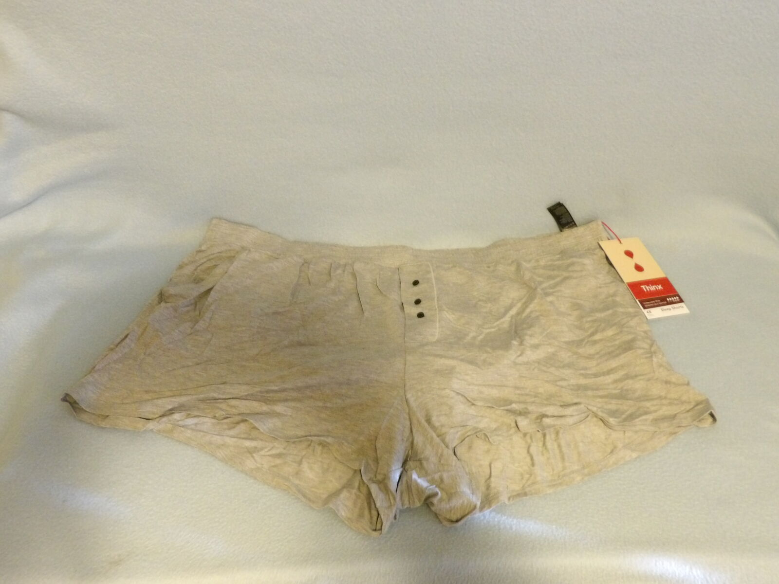 $40 The Light Grey Sleep Shorts Super Heavy Absorbency - 96% Modal, 4% Elastane shell; 95% Cotton, 5% Elastane lining; and 100% Polyester gusset. Retail $61