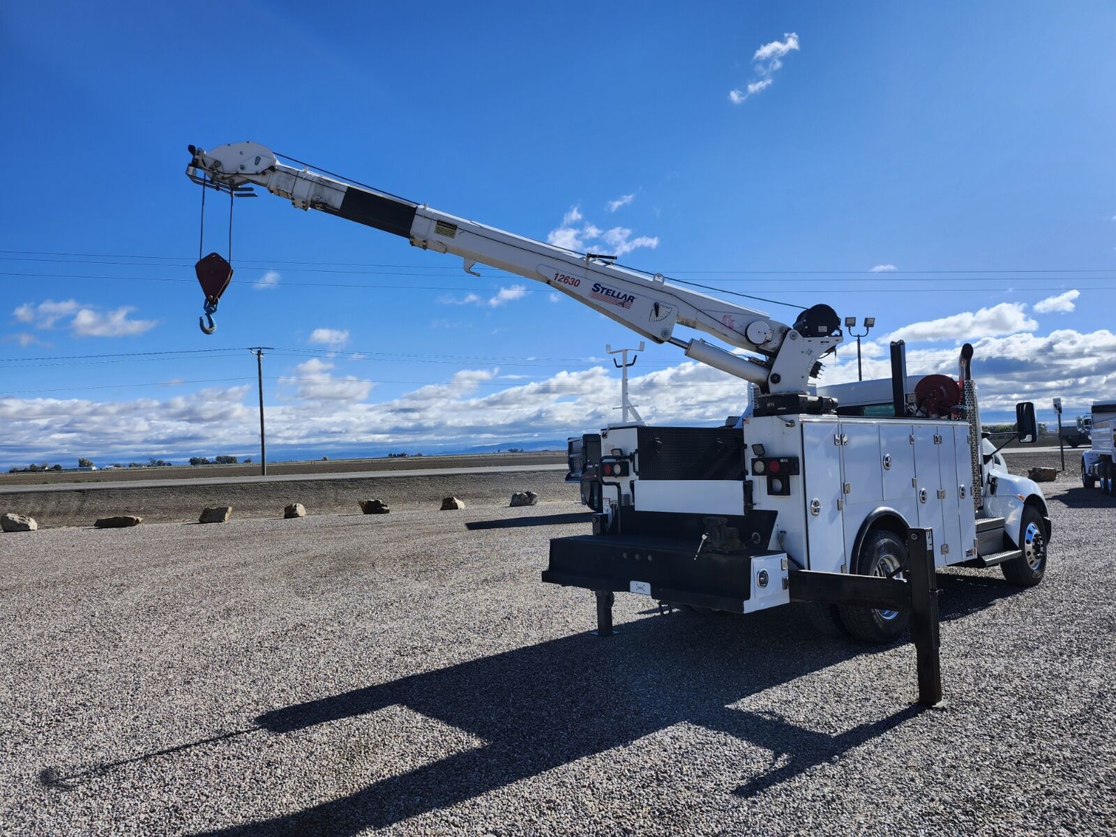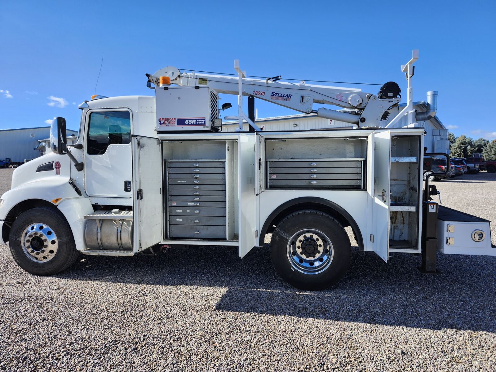 Stellar TMax service body- 14', Remote control, Stellar 12630 crane- 30 FT, 12,000 lb lift, 65R air compressor- PTO driven, Hyraulic outriggers, Allison 3500RDS transmission, Paccar PX9 300HP, Engine brake, Reyco spring suspension, 86" Cab/axle, Locking differential, 5.57 ratio, Single 56 gal fuel tank, 12K FA- 21K RA, A/C, Cruise, Engine block heater, Tilt wheel, Power door locks, Power windows, Power/heated mirrors, Everything works great!! 2018 Kenworth T370