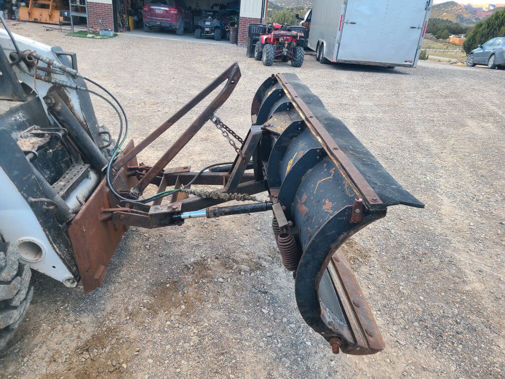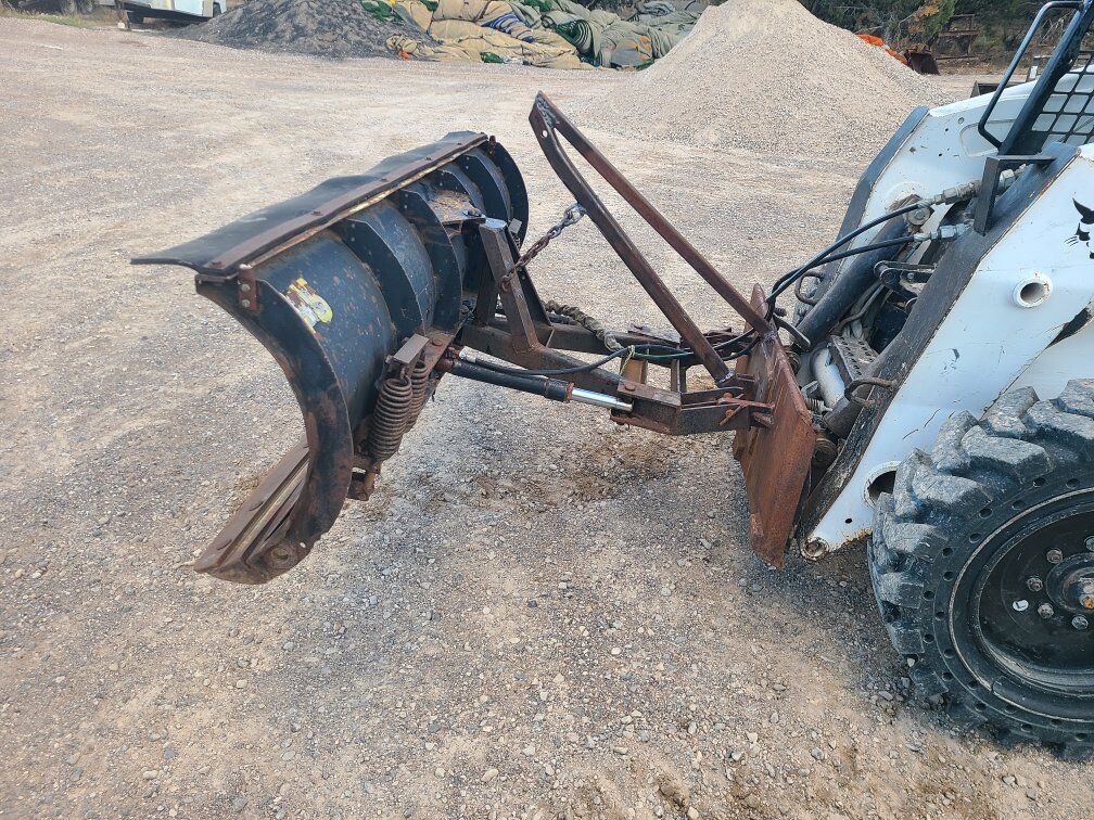 7'6" wide Snow Plow mounted to a universal skid steer mount. It's ready to use. Hydraulics work, has some life left on the cutting edge. Has a spring loaded cutting edge so it folds back when it strikes something solid. Really nice unit, well built. I have 2 and only need 1. Cash only.