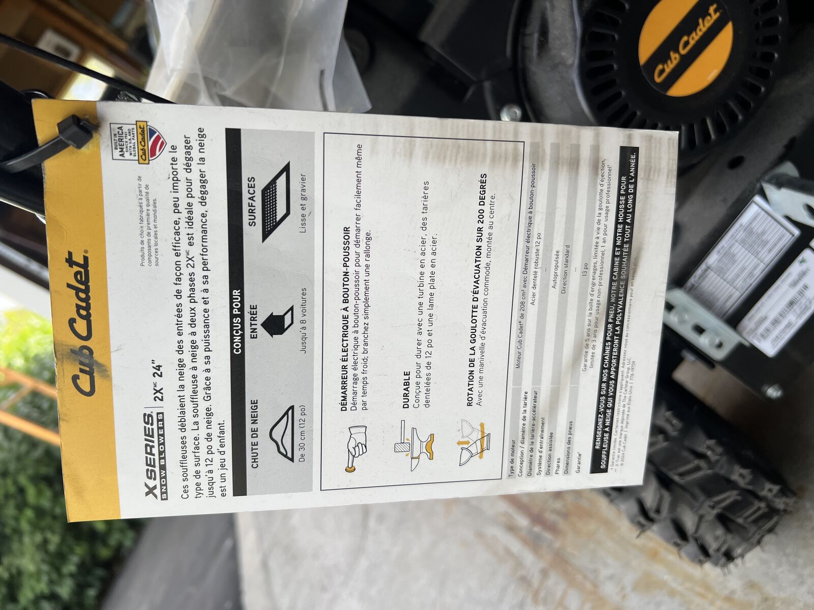 VenmoBrand New Cub Cadet 208 CC 24in snowblower, model No. 2X24 or 31AS6KXRA56. Comes with original bag of manuals and oil. It is brand new, never been ran. Manufacture date 9/24.