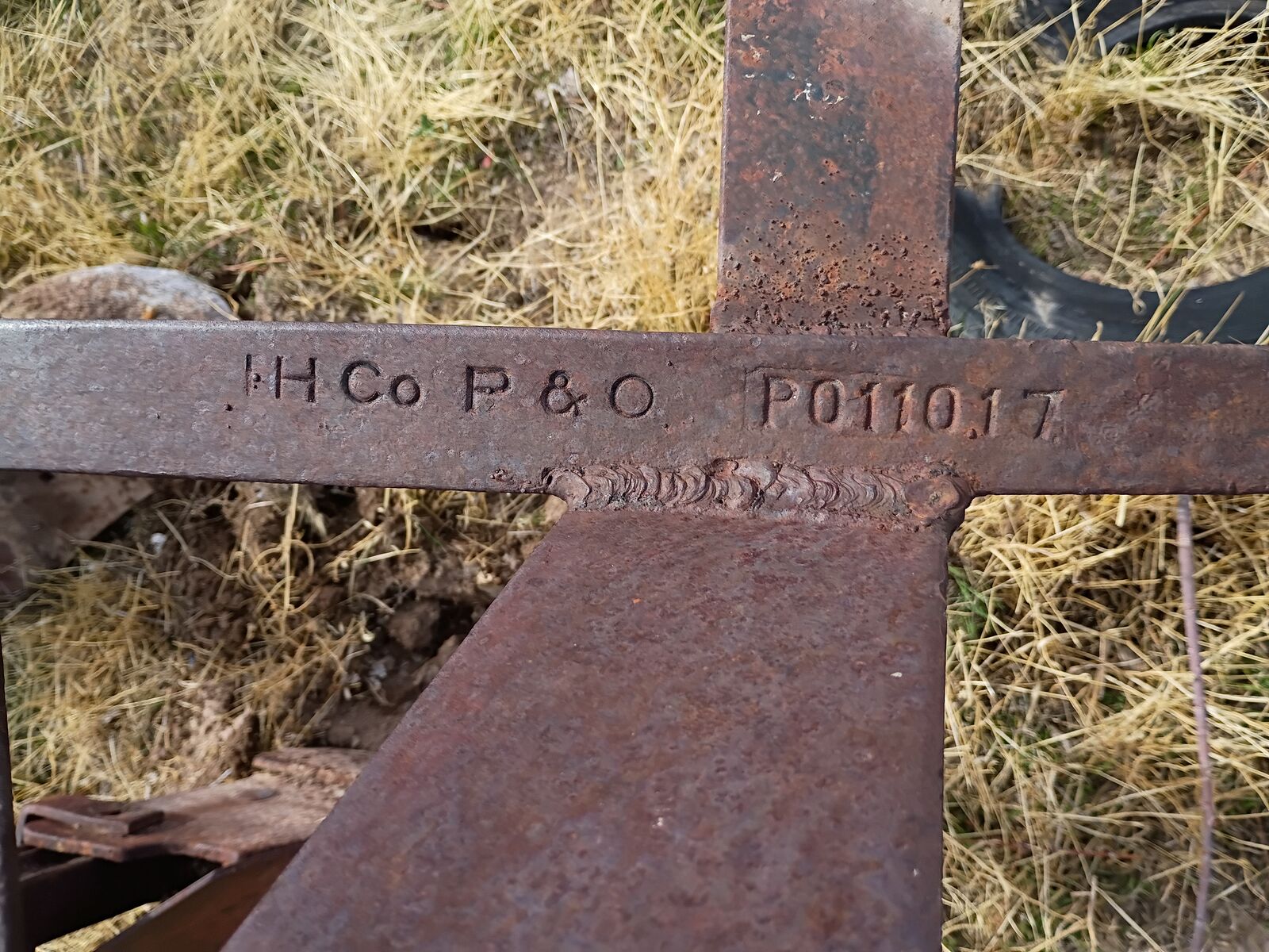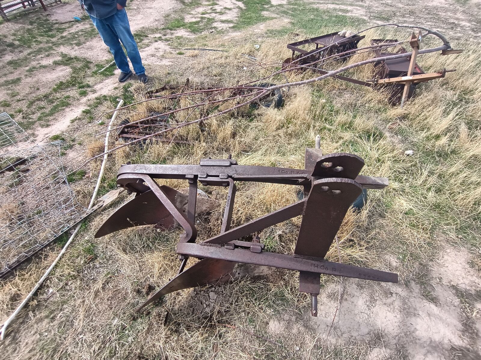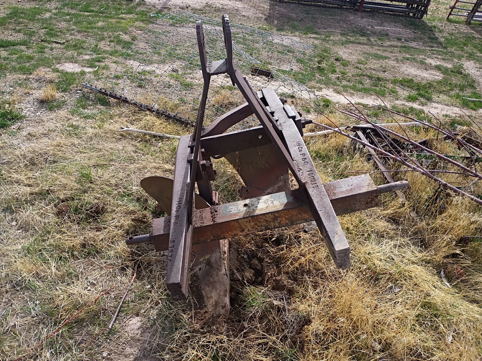I believe this was a horse drawn Parlin and Olendorff two bottom plow. At some point the handles have been cut off and the three-point hitch was installed. I used this with a TO20 Ferguson. The TO20 just wasn't powerful enough. It depended upon the conditions of the soil. A 30 to 40 horse powered tractor or larger would probably work great, or this would make a great yard ornament. This plow is fully functional.