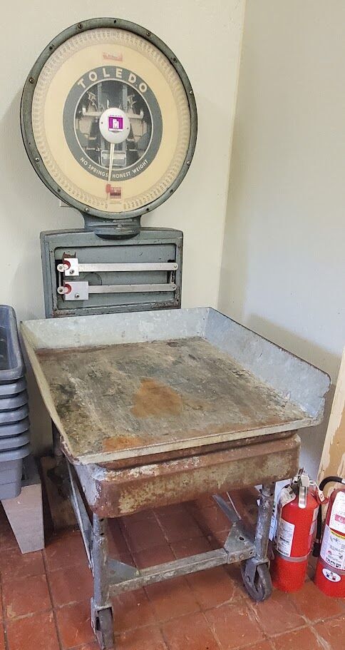 Toledo brand platform scale has 500 pound capacity to weigh produce, grain, meat, and hunting spoils