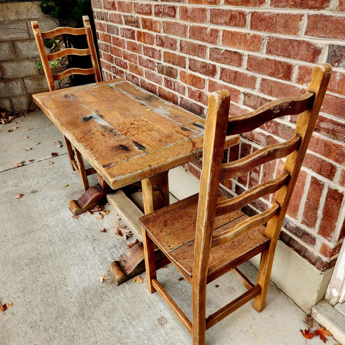 Zelle19th Century Vintage Trestle Dining Table with Chairs $350 OBO