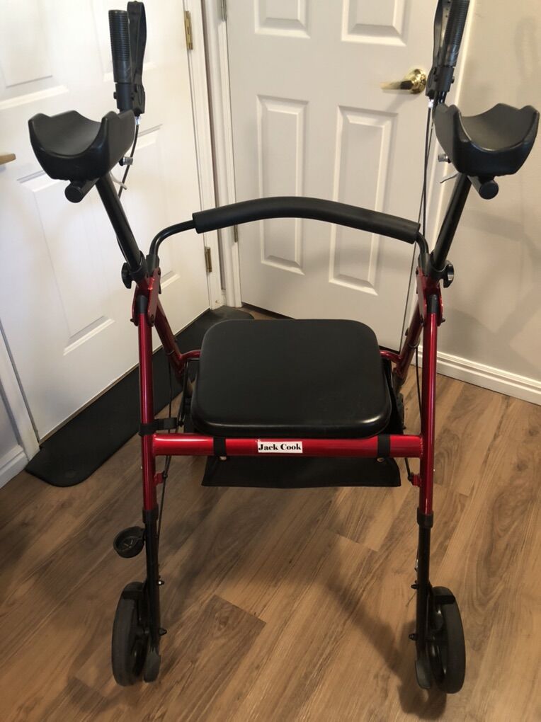 PayPalThis is an upright or stand up rollator walker. It helps keep your back straight and erect. No more hunching over! It has padded armrests for your forearms and a comfortable seat with storage and a backrest. My dad only used this for a month or two, so it’s in excellent condition. Comes from a smoke and pet free home. Thanks for looking!