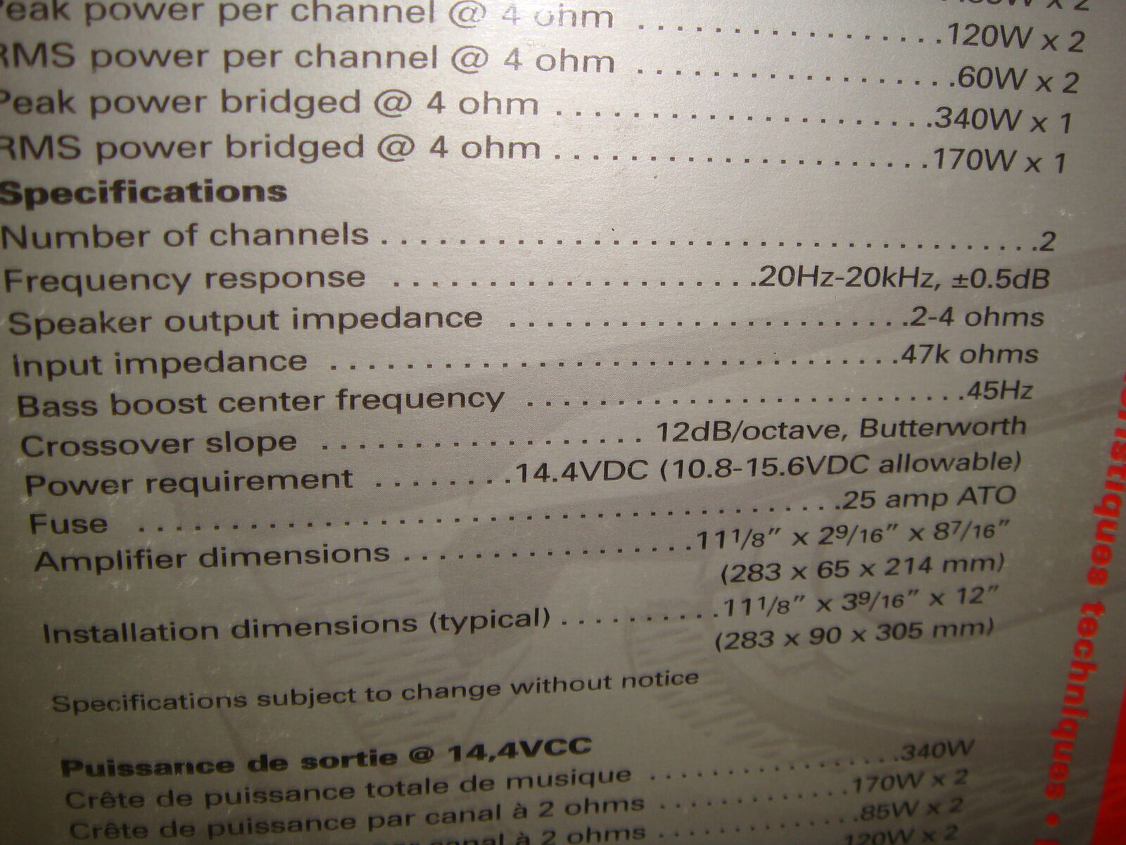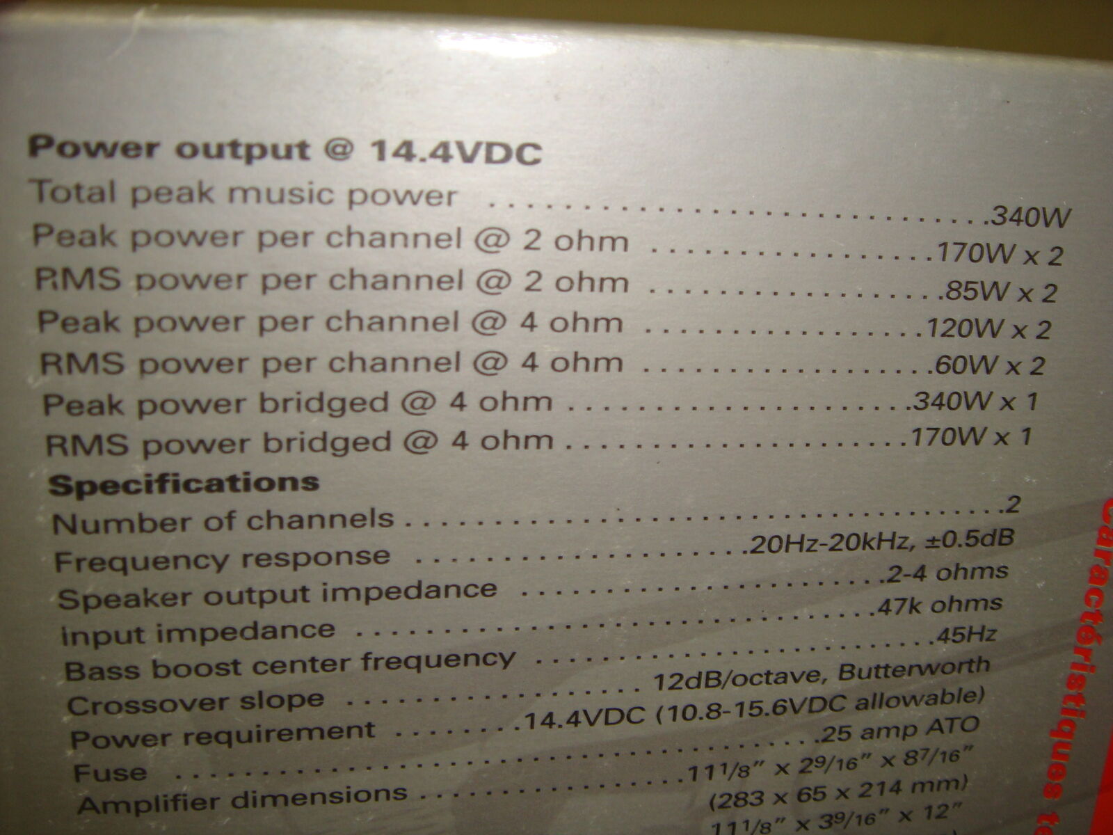 RMS Power (Watts Per Channel) -170 x 2 @ 2