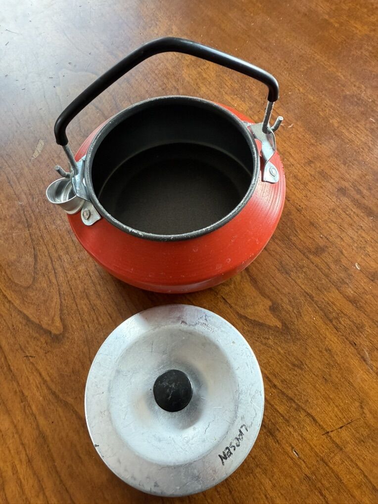 Vintage Trangia brand camp small metal teapot made in Sweden rare red color