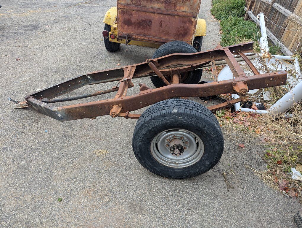 All there is is a frame, with the tires to this trailer. All in all, it's a great trailer. to make into a flatbed or put a bed on to use for hauling around stuff, I just don't have the time for that so I'm going to sell it. if interested please contact me. thank you so much. Cash only