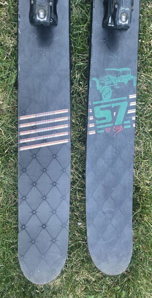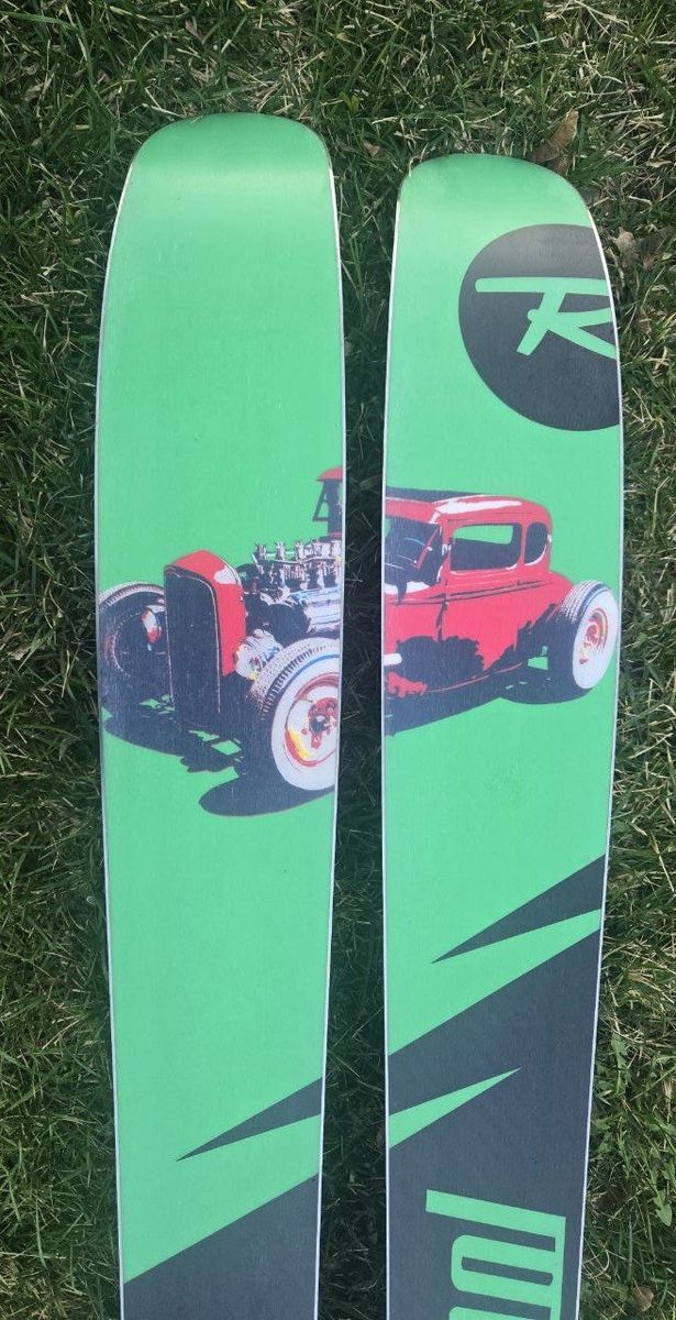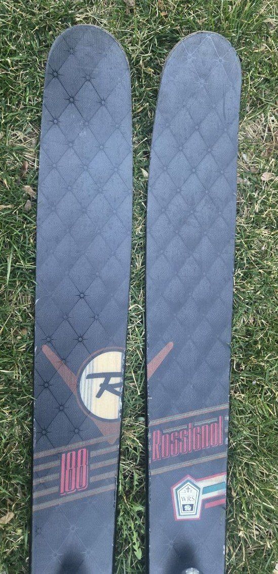 VenmoGreat pair of men's 188 cm Rossignol SAS S7 (Steve Caballero) downhill fat powder rocker snow skis with Rossignol Free bindings. Using twin tip construction combined with a new tricked-out reverse camber, reverse sidecut shape and incorporating sidecut underfoot for navigating in the backcountry on deep powder days! Skis are in great condition with some minor topsheet wear along the edges(see pictures). Turning radius 17.5m. Text please.