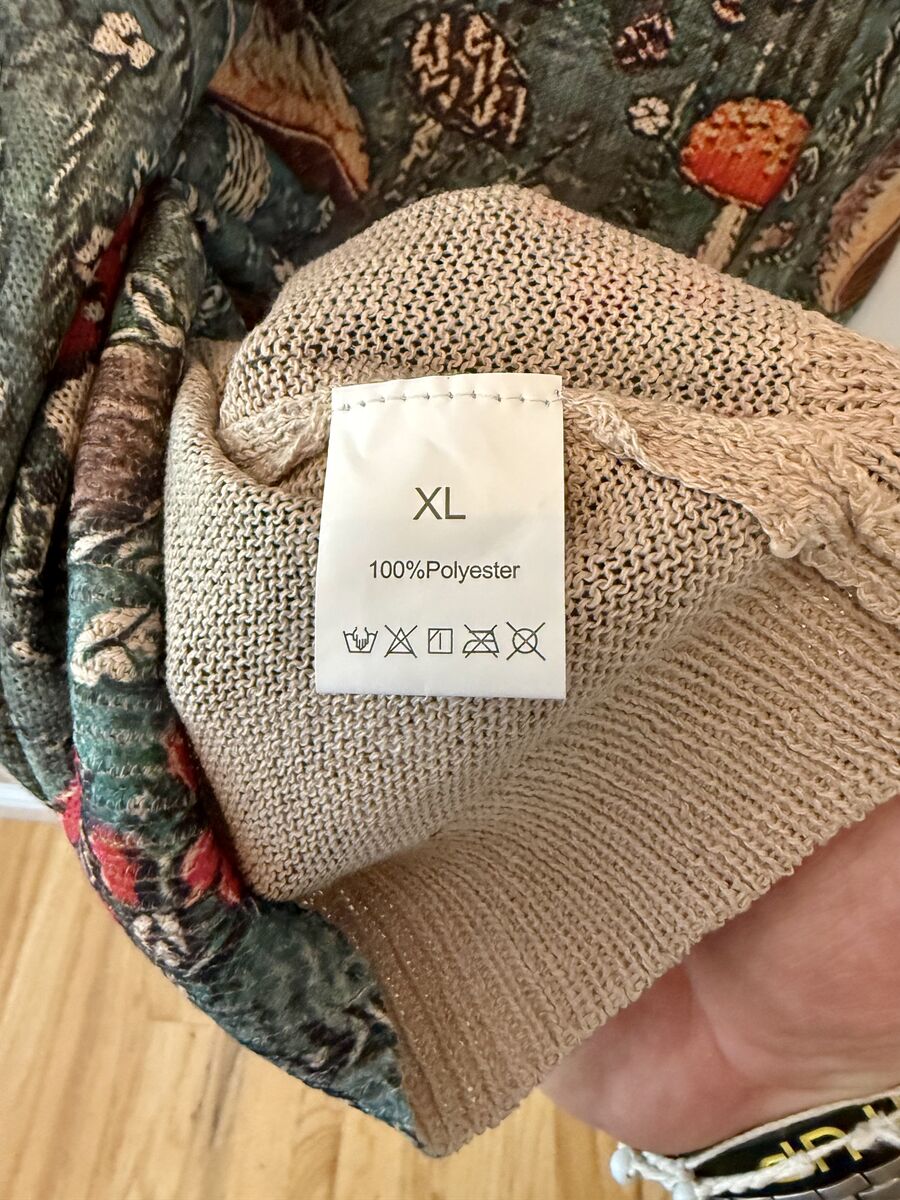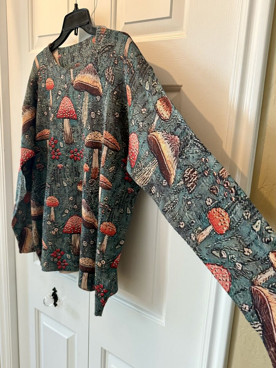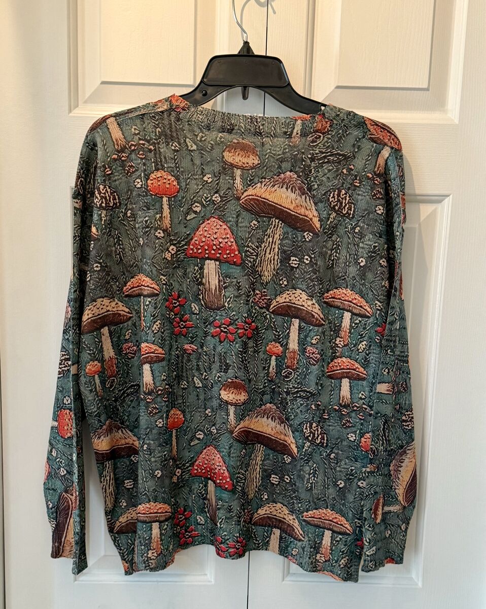 NEW - All Over Mushroom Print Lightweight Sweater on Green Background - Womens SZ XL - C PIX. This is such a cute and fun sweater. You will love it!