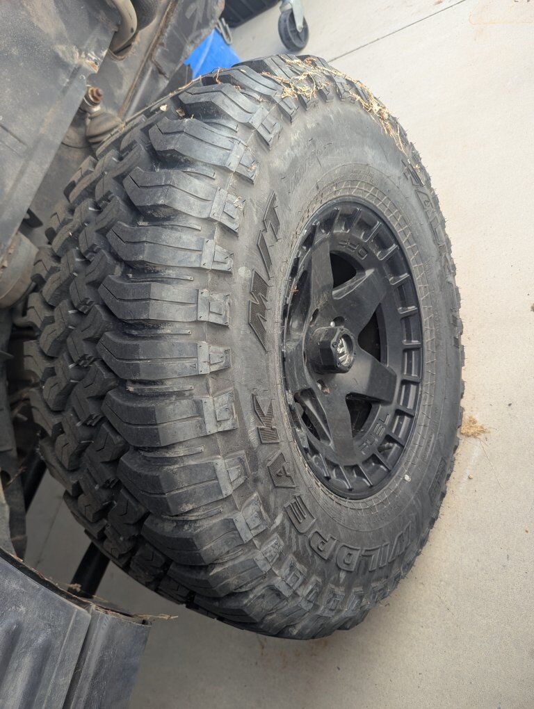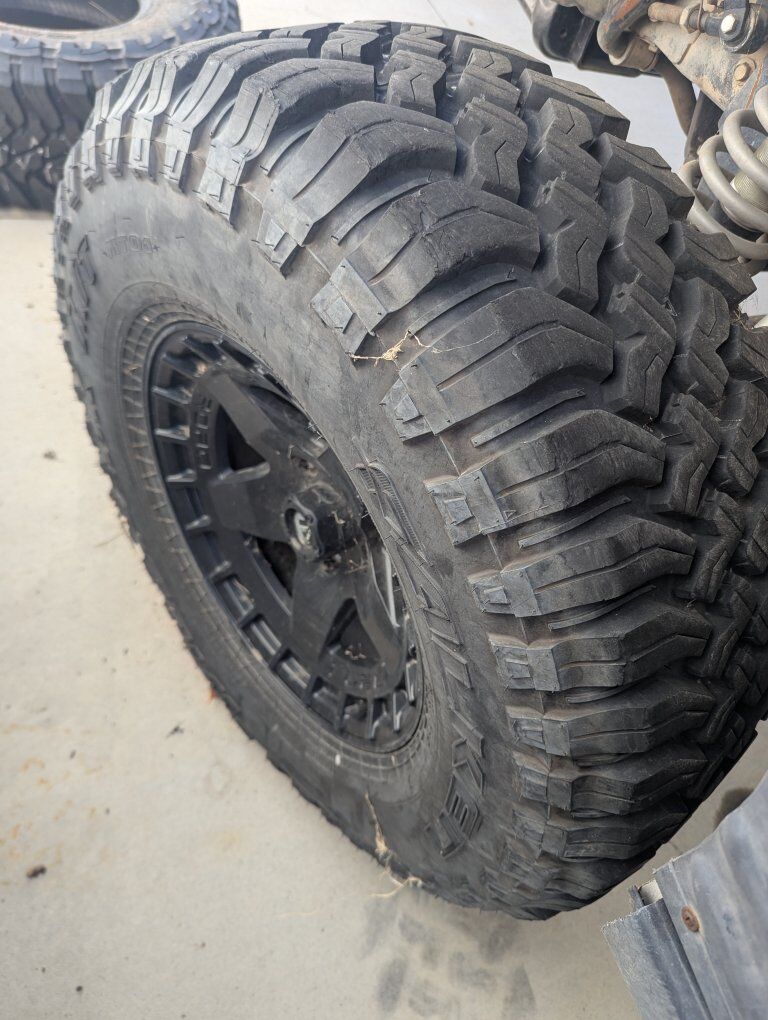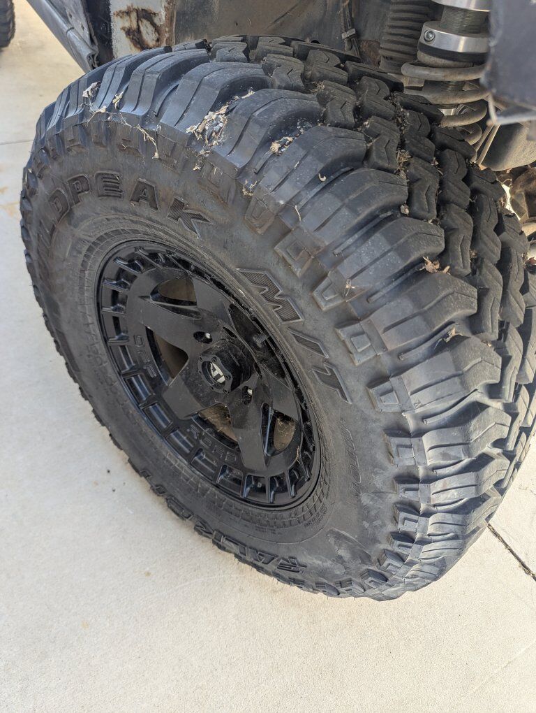these are 17" black rhino warps 5on5 jeep JK bolt pattern with 35" fallen wild peak mts....these have been on the jeep for a couple years and have less than 1000 miles on them, due to the transmission going on the jeep....they are dirty but in great shape, asking 1500obo