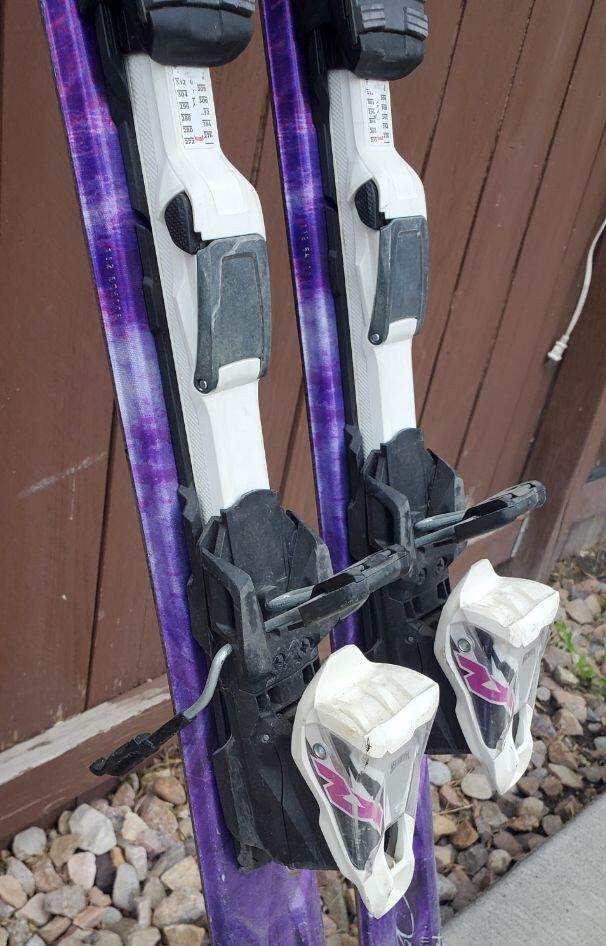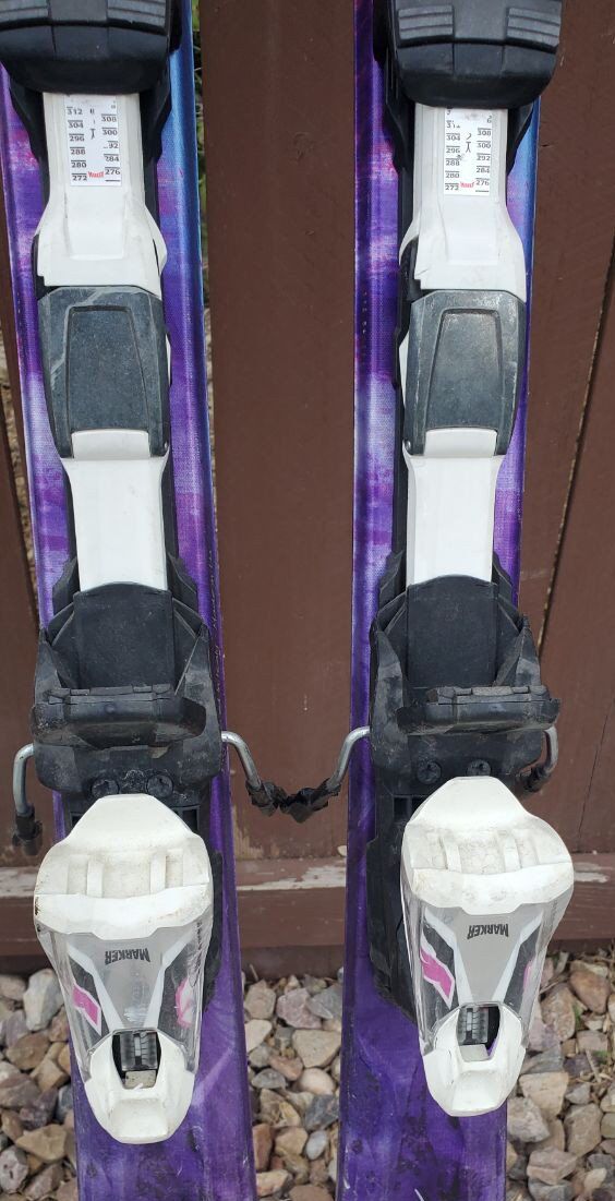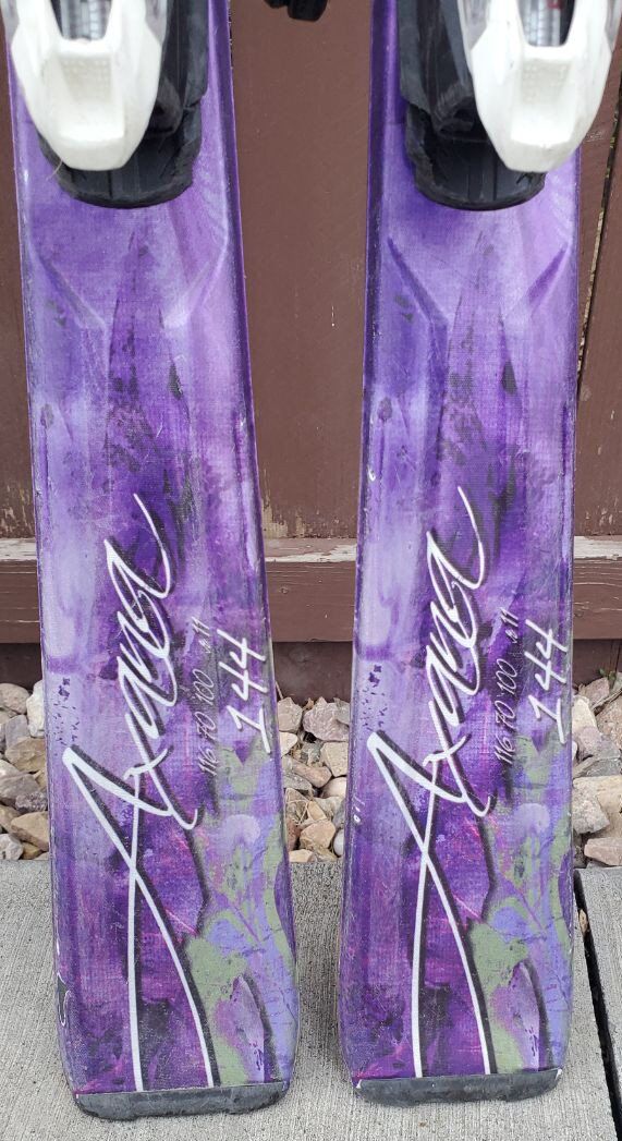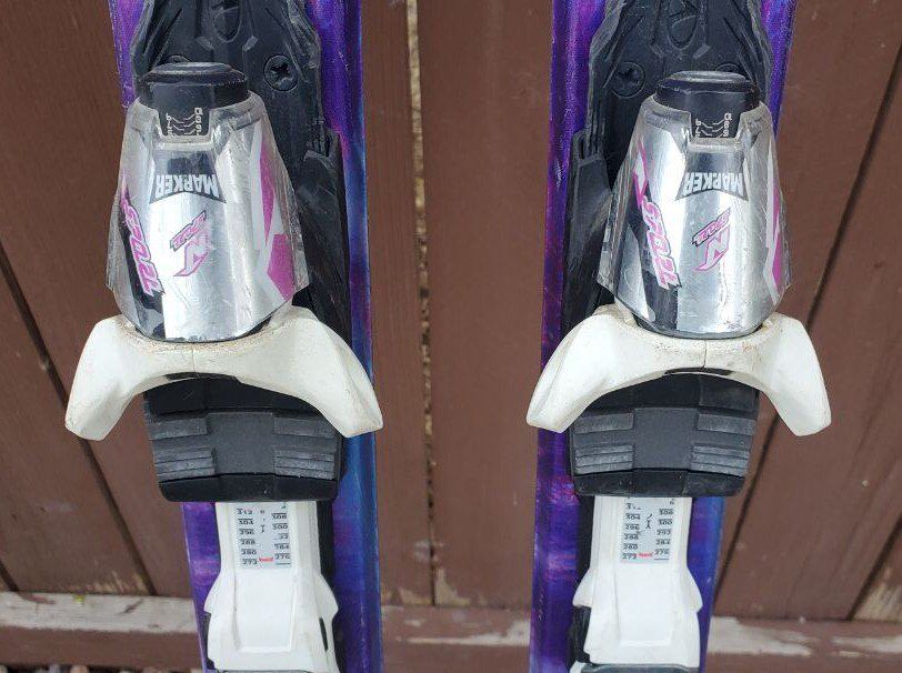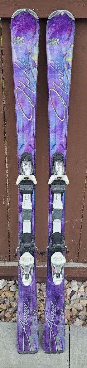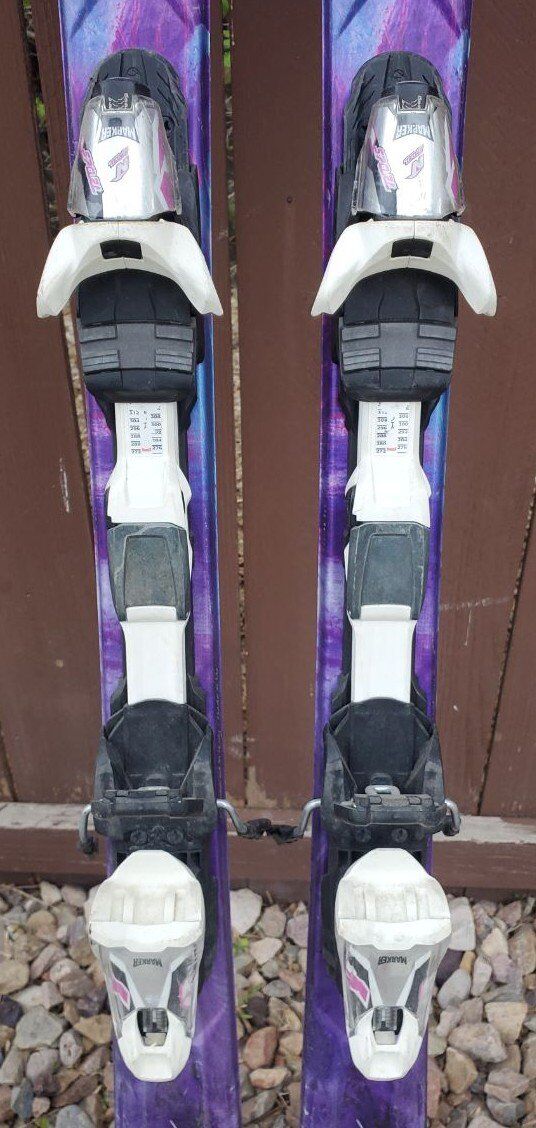 VenmoAwesome Women's/Girls Nordica Axana 144 cm Downhill Skis. Comes with adjustable to your boot size Marker Bindings. Dimensions: 116/70/100 mm. Turning radius 11 m. One of the skis on the bottoms will need to be filled before using the skis this season. (see pictures in the listing). Great skis to use this ski season!
