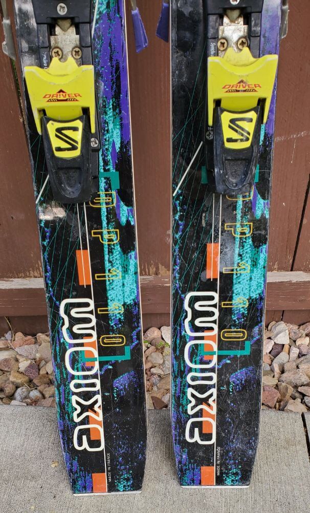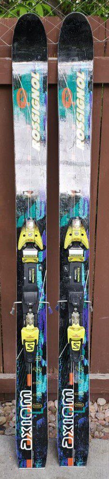 VenmoAwesome 163 cm Rossignol Axiom DP 110 Fat Powder Rocker Downhill Skis. Comes with Salomon Equipe Bindings. Dimensions: 130/111/120 mm.