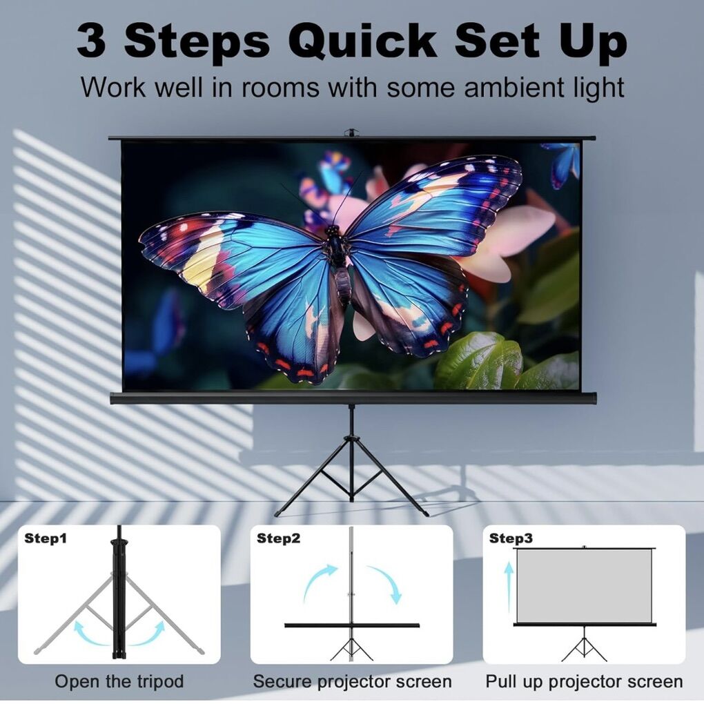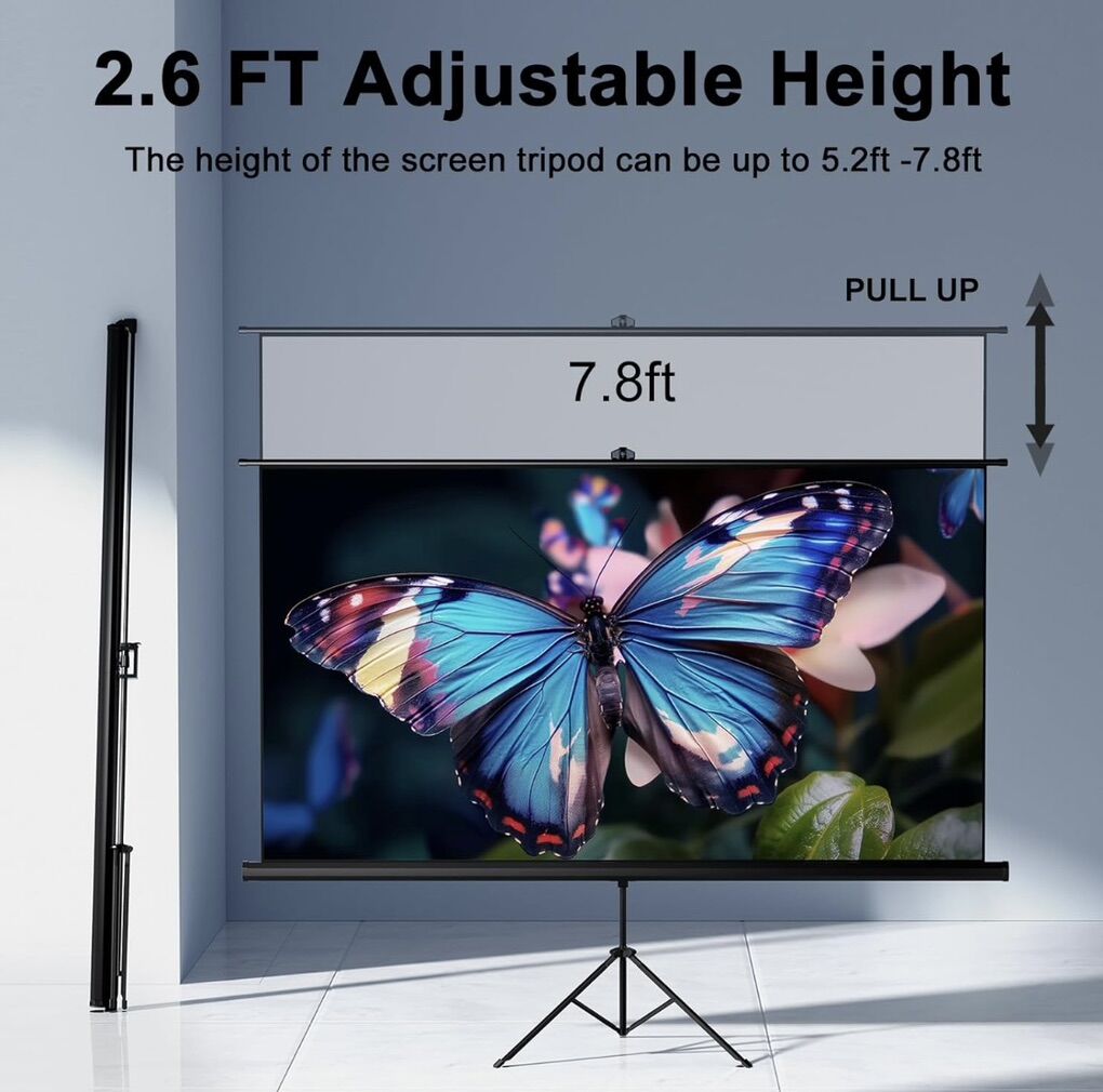 VenmoBrand new still in the box! Cash or Venmo accepted. 80 in Outdoor Projector Screen with Stand Tripod, Indoor Pull Up Portable Projector Screen, 80 INCH 16:9 Adjustable Projection Screen with Carry Bag for Home Theater Backyard Party Movie Night