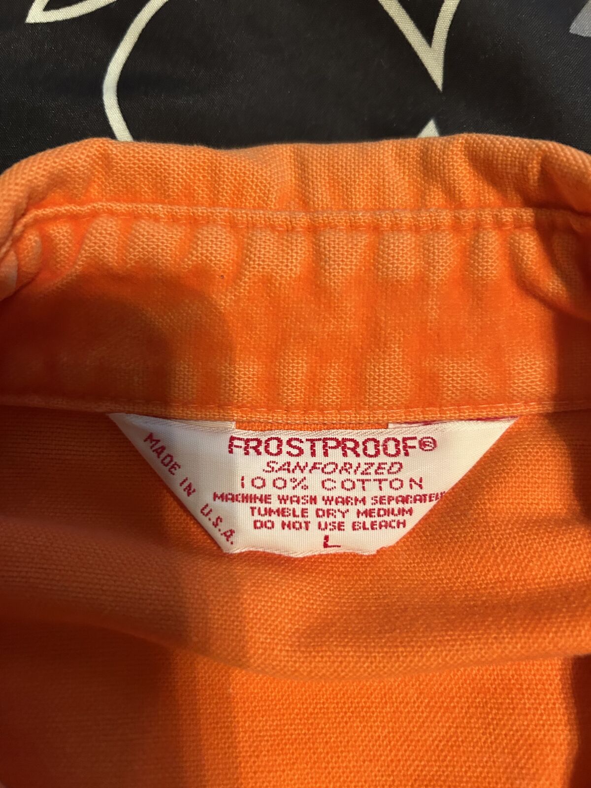 I have a Frostproof Mens Sanforized 100% Cotton Hunting Shirt Size L for $10 cash. This is used but in good condition. It runs small, more like a medium size. This has been in a smoke/pet free home. Contact me to see.