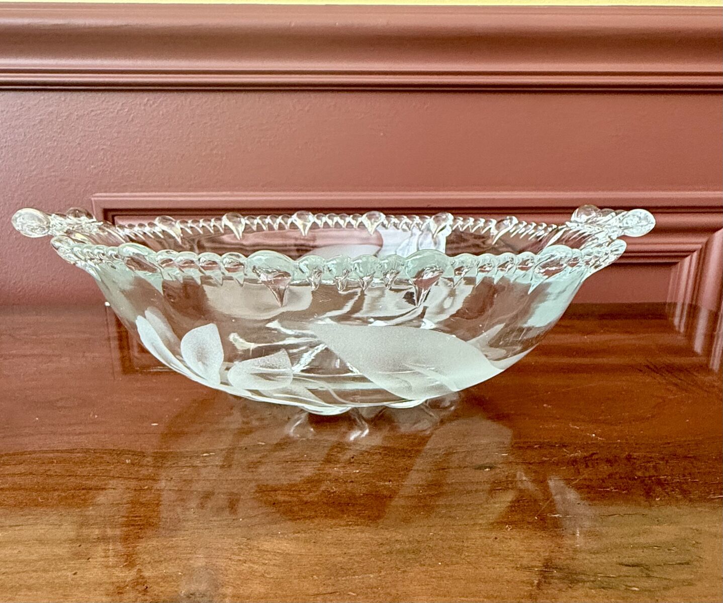 1920s Antique Paden City Vermilion Line 555 Crystal Bowl w/ Wheel Cut Floral Design - Gorgeous- C PIXS. I love this style with the bubbles that go around this piece. A showstopper for sure.