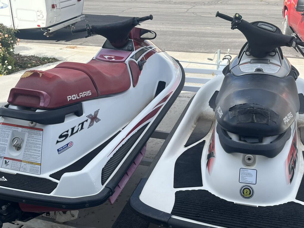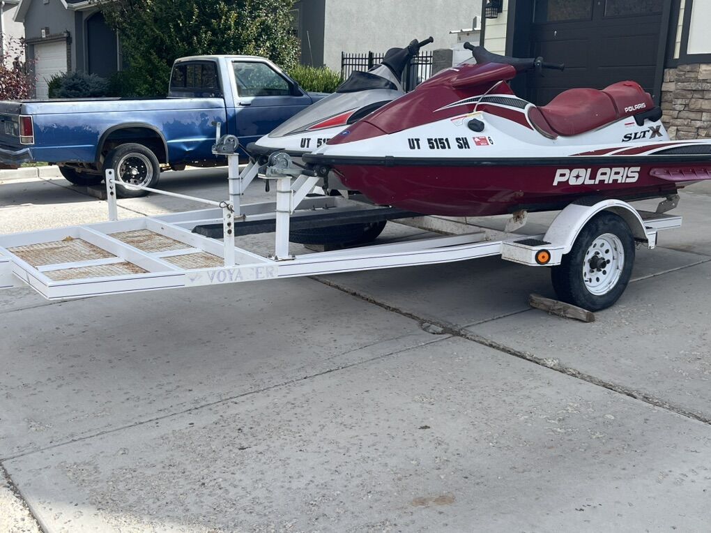 2000 Polaris SLX (Black) – 2-Seater Both jet skis are solid machines with tons of potential. They need carburetor adjustments, but they’re almost ready to hit the water: Red SLTX: Runs full speed at 47 MPH, which feels super fast on the water! However, it has no throttle response between idle and full. Black SLX: Idles perfectly and runs great, but struggles to get up to speed. I just don’t have time to tune them up this winter — make me an offer, fix them up, and enjoy them in the spring! Trailer Included: Great tires Fully functional wiring Carpet in good shape Located in Nephi, Utah