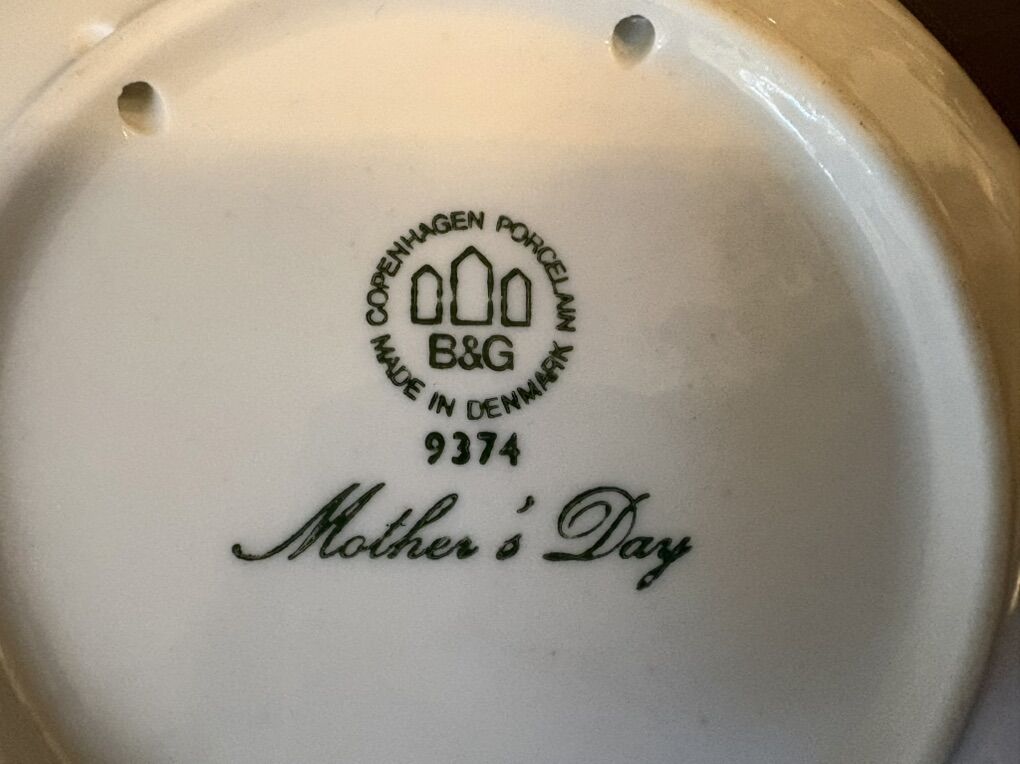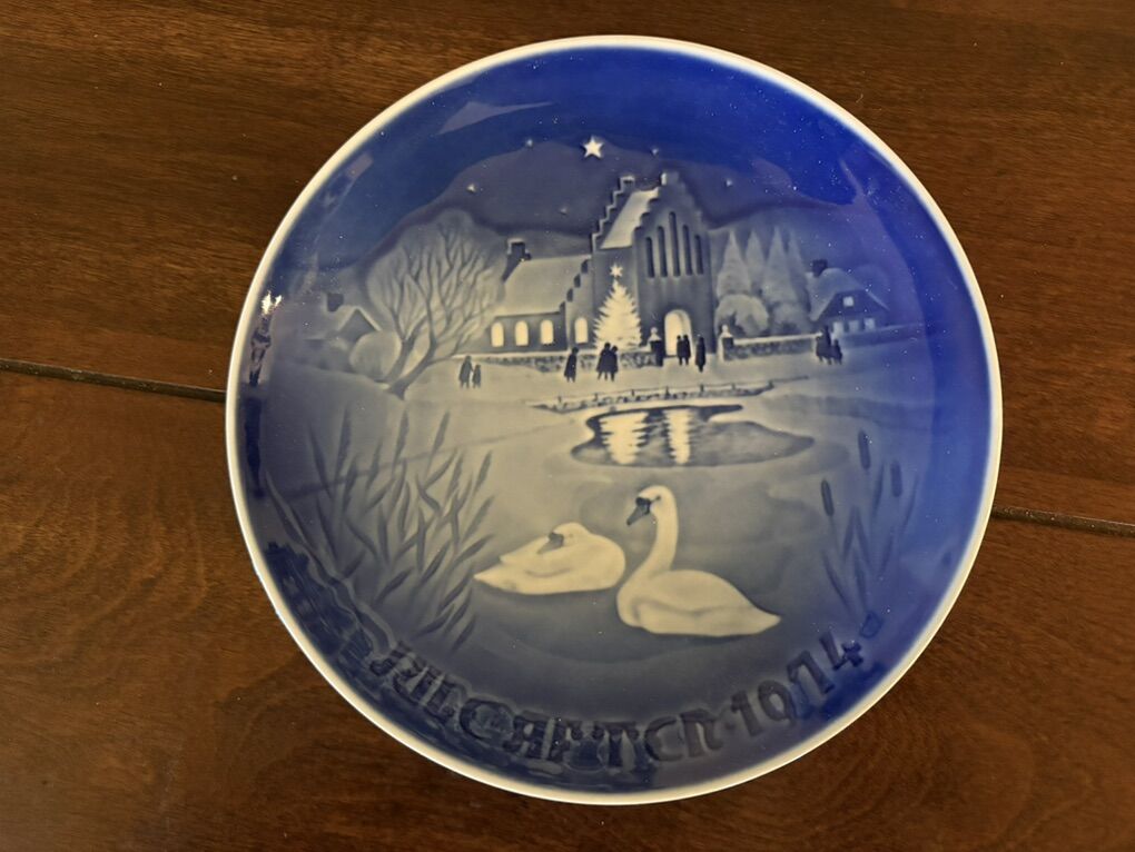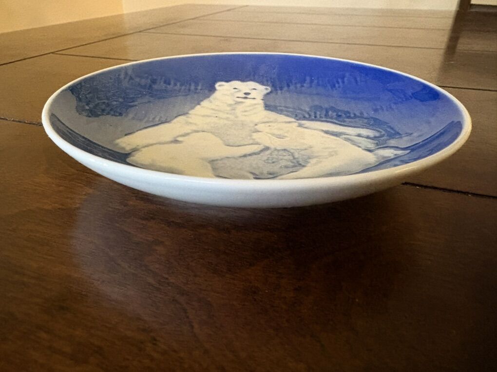 I have 2 blue Bing & Grondahl porcelain plates from Denmark. The one on the left is a Christmas plate with swans. It says Jule After 1974. It is 7 1/4 inches across. The one on the right is a Mother’s Day plate with a polar bear and her cubs. It says Mors Dag 1974. It is 6 inches across. The price is for both of them together but I can split them up if you only want one. See my other ads for jewelry, artwork, home decor and more.