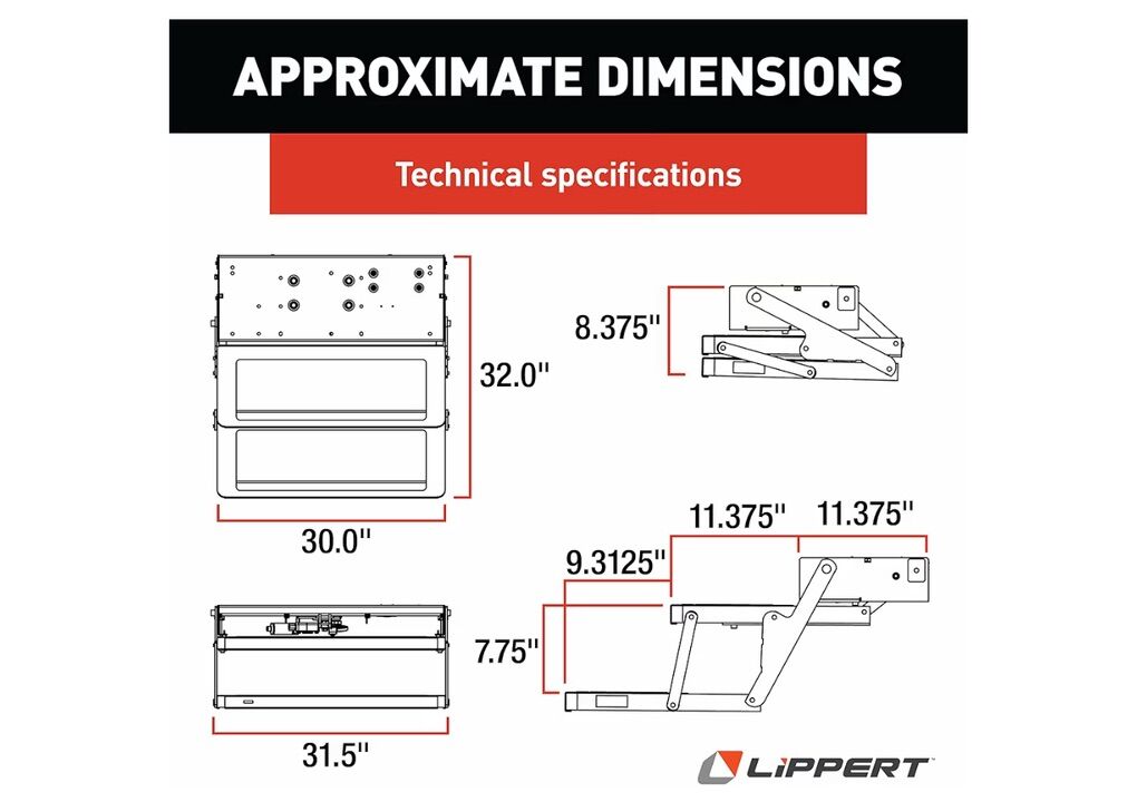 Kwikee 34 Series Electric Step Assembly, Logic Control Unit, Power Switch Kit for RV, Travel Trailers, Hidden Light, 8.5 Step Rise, Anti-Slip Surface, 12V DC Motor, Steel Construction - 3722862